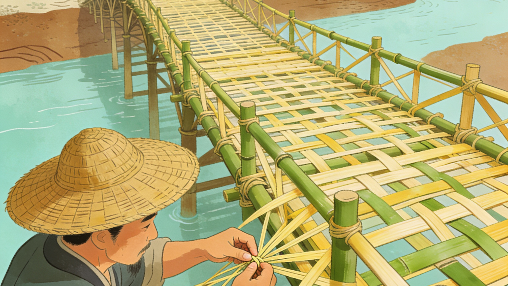 為了增強橋梁的穩定性和安全性,工匠們還會在橋的兩側添加扶手索,并對整個橋梁進行加固。扶手索不僅可以為行人提供支撐,還能防止行人不慎墜落。此外,他們還會對橋梁進行細致的檢查,對不牢固的地方進行修補和完善。