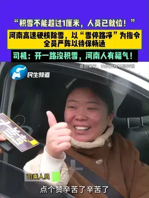 12月12日,河南鄭州,“積雪不能超過1厘米,人員已就位!”,河南高速硬核除雪,以“雪停路凈”為指令,全員嚴陣以待保暢通,司機:開一路沒積雪,河南人有福氣!