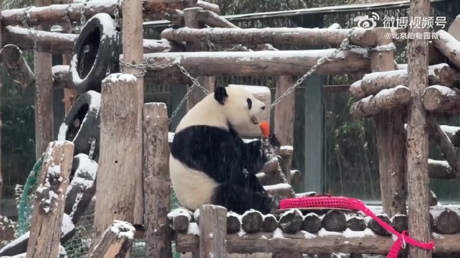 萌蘭雪中啃胡蘿卜變糖霜寶寶