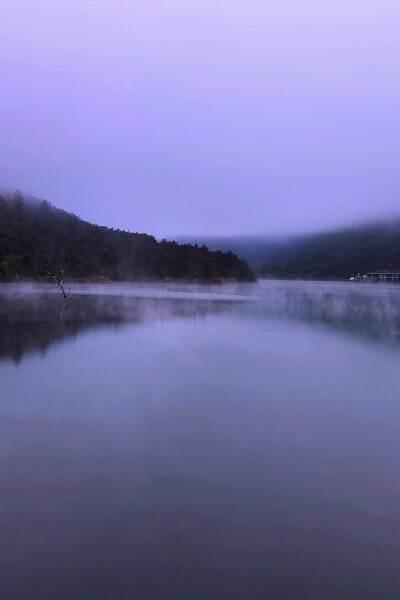 走到湖邊小徑,四周靜得出奇,只有幾聲鳥鳴從蘆葦叢中傳來,清脆又遙遠。湖面像一塊巨大的墨玉,邊緣被淡青色的霧氣輕輕包裹,仿佛天地間剛剛蘇醒的一口呼吸。我停下腳步,深吸一口氣,胸口頓時被一種難以言喻的寧靜填滿。