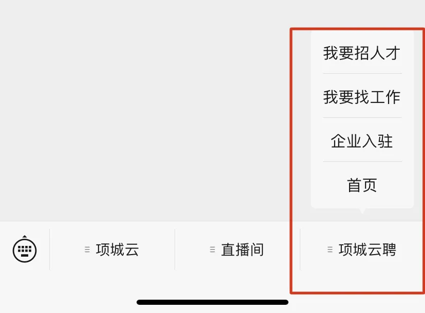 點(diǎn)擊“發(fā)消息”,選擇下方菜單欄進(jìn)入【項(xiàng)城云聘】