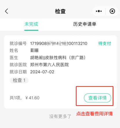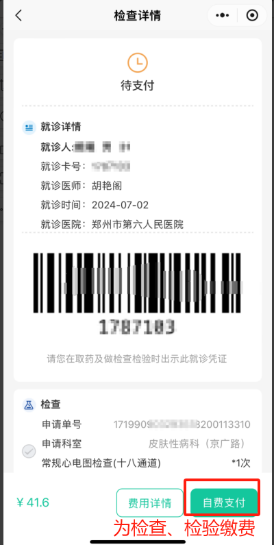 就診結束后進行繳費,進入我的申請單?選擇要繳費的類別?查看申請單,點擊詳情進行繳費?點擊“自費支付”進行繳費