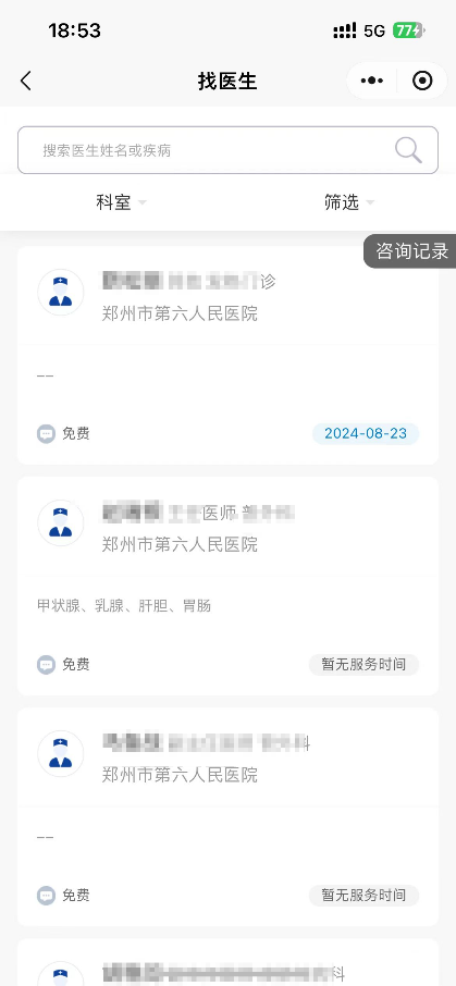 點我進入→鄭州市第六人民醫院互聯網醫院