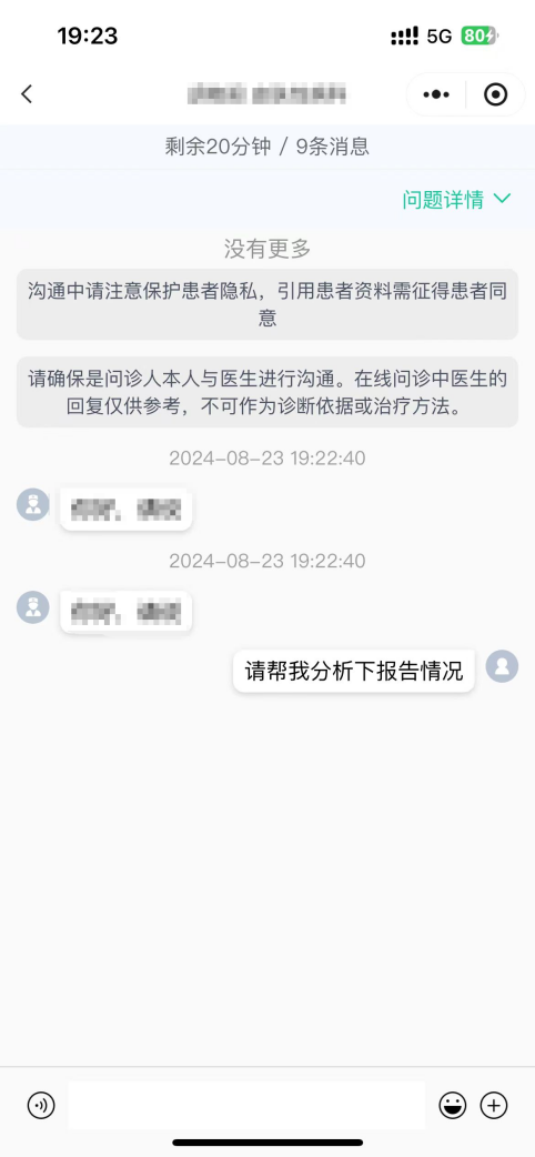 選擇預約時段,填寫咨詢單信息,附上報告圖片等,等待醫生回復后可以與醫生進行溝通
