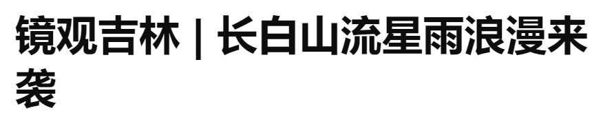 新華社客戶端推出《鏡觀吉林 | 長白山流星雨浪漫來襲》、央視新聞客戶端推出《繁星耀長白丨雙子座流星雨“綻放”長白山夜空 解鎖吉林冬日限定浪漫》《直播|年度壓軸雙子座流星雨迎來極大》,報道近日,長白山流星雨浪漫來襲,雙子座流星雨迎來極大值,給觀星和星空攝影愛好者帶來一場年終盛宴。