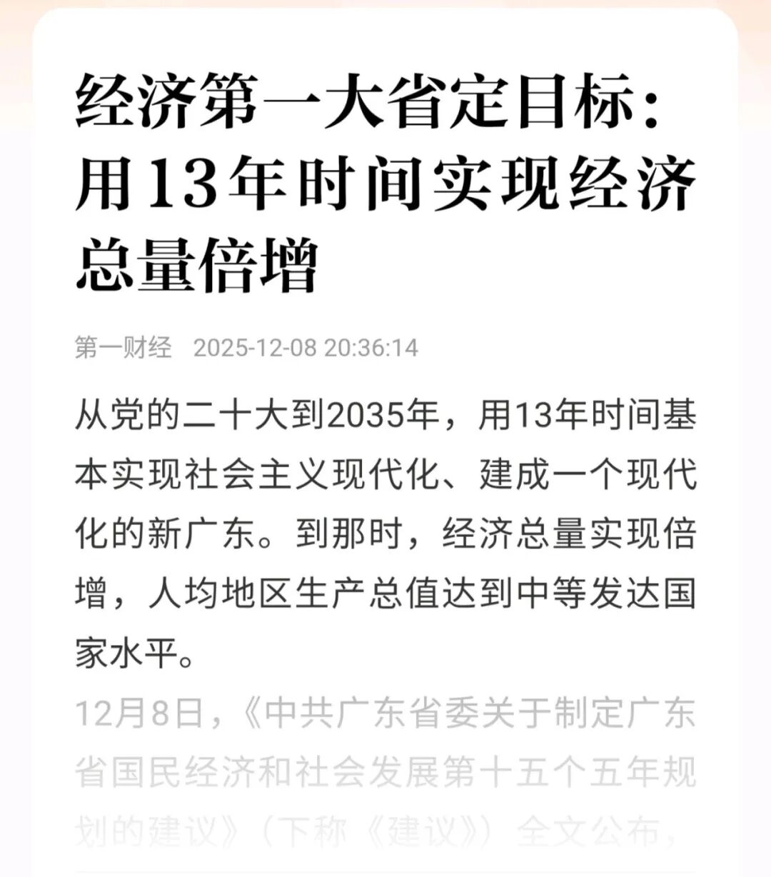 經濟總量翻番,意味著到2035年廣東GDP總量要達到25萬億以上。