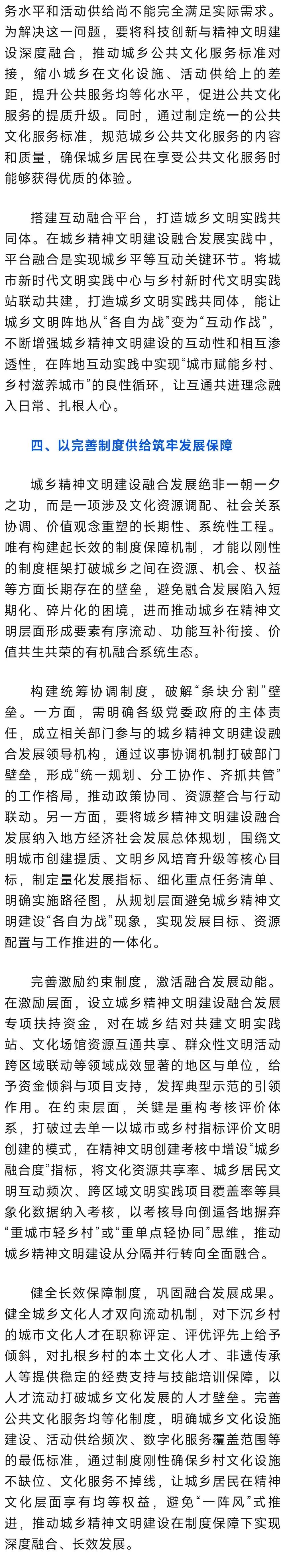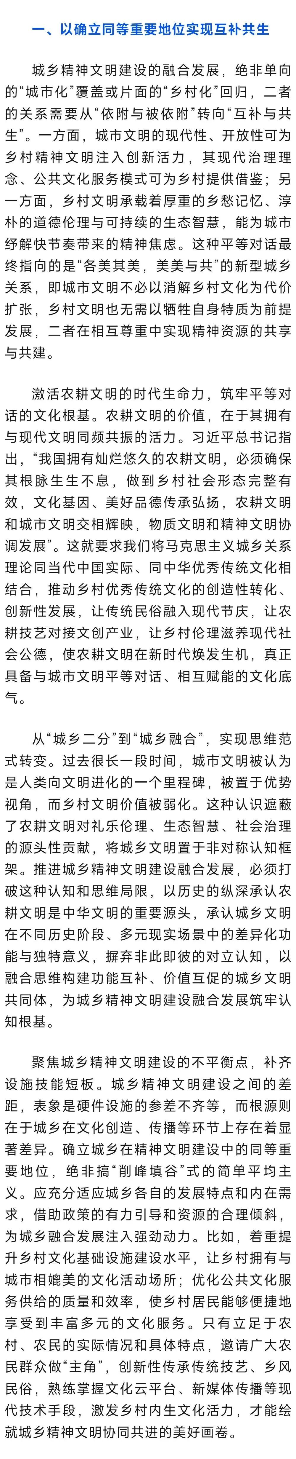 精神文明是一個國家、一個民族走向現(xiàn)代化的重要標識。唯有精神上達到一定高度,這個民族才能在歷史的洪流中屹立不倒、奮勇前進。習近平總書記強調,“要統(tǒng)籌推動文明培育、文明實踐、文明創(chuàng)建,推進城鄉(xiāng)精神文明建設融合發(fā)展”。新時代新征程,深入學習貫徹習近平總書記關于精神文明建設的重要論述,深刻把握精神文明建設的時代特征和發(fā)展規(guī)律,必須從主體、價值、空間、制度四重維度著力,開創(chuàng)新時代城鄉(xiāng)精神文明建設融合發(fā)展新局面。