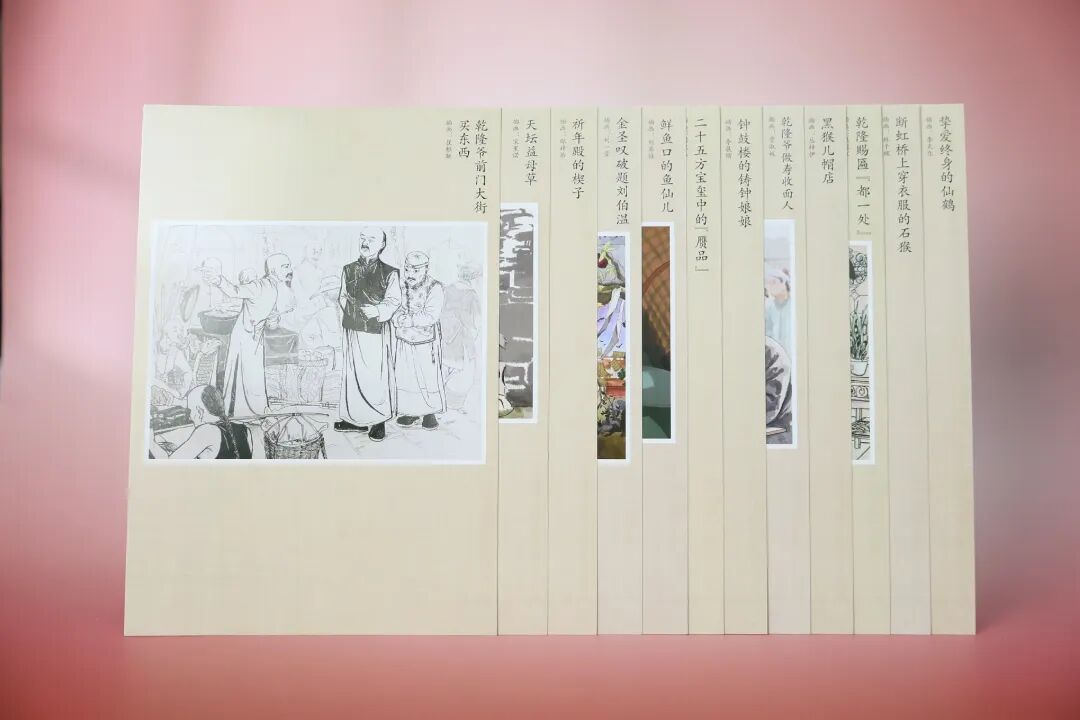 楊建業(yè):請(qǐng)中央工美附中的同學(xué)們?yōu)椤侗本┲休S線傳說》繪畫,是源于我2023年組織“前門的傳說小小傳承人大賽”時(shí),工美附中同學(xué)們的作品,讓我感到十分驚喜。工美附中的王校長(zhǎng)也是一位非遺項(xiàng)目代表性傳承人,他很重視學(xué)生的傳統(tǒng)文化教育和非物質(zhì)文化遺產(chǎn)項(xiàng)目體驗(yàn),同學(xué)們與中軸線文化有很密切的接觸,他們的作品也表現(xiàn)出了很高的技巧。其中的《乾隆賜匾都一處》《天壇益母草》《前門大街買東西》等作品都神韻十足。此次請(qǐng)工美附中的同學(xué)們來繪制插畫,也是想通過這種方式,讓青少年更多地了解北京中軸線傳說。出版社把這些插畫做成了明信片,與書一起封裝,使其成為了一個(gè)獨(dú)具特色的文創(chuàng)產(chǎn)品。