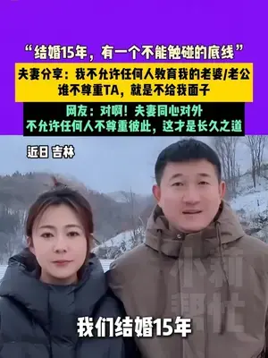 近日 吉林,“結(jié)婚15年,有一個不能觸碰的底線”夫妻分享:我不允許任何人教育我的老婆/老公,誰不尊重TA,就是不給我面子,網(wǎng)友:對啊!夫妻同心對外,不允許任何人不尊重彼此,這才是長久之道 (素材:@一只幸運 )