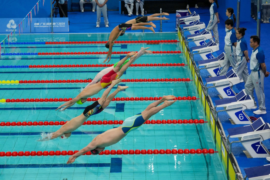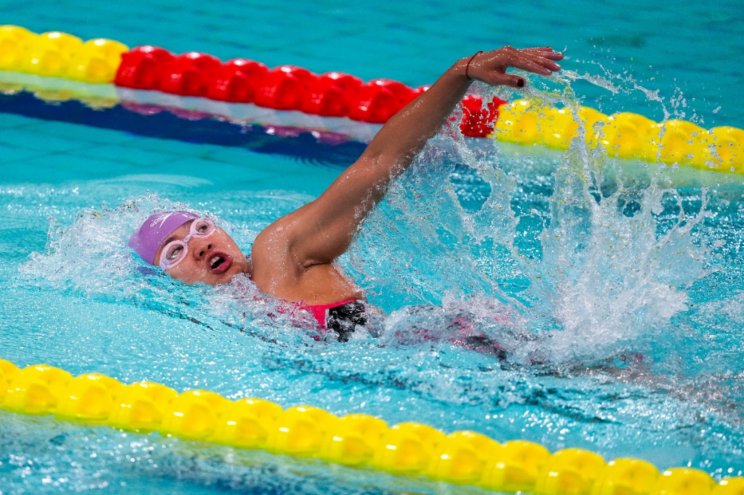 作為巴黎殘奧會亞軍、杭州亞殘運會冠軍得主,香港隊陳睿琳表現不俗,在女子100米蝶泳S14級決賽中一路領先,以1分06秒05摘得個人第三金,并創下全國紀錄。