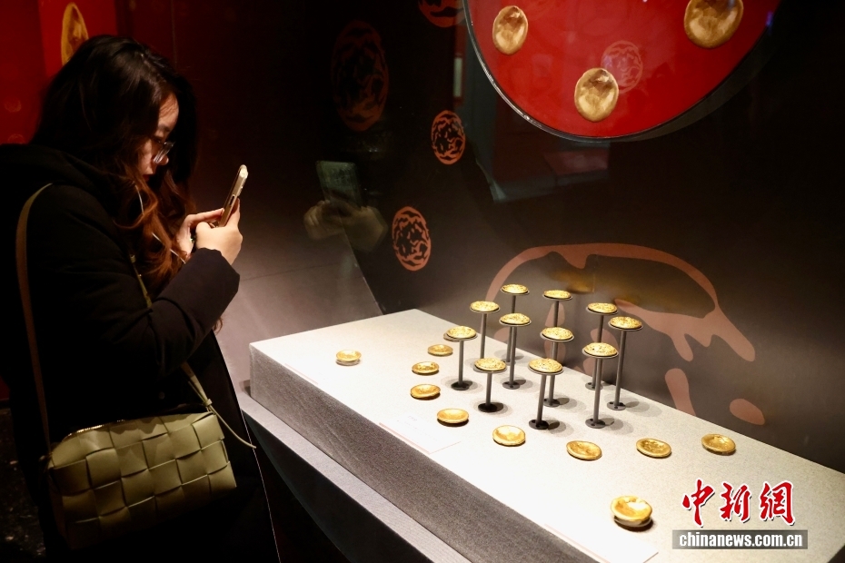 12月15日,“海昏侯:身歷王帝民侯,墓藏大漢風云”展覽在北京路縣故城遺址博物館開幕。展覽展出百余件/套海昏侯墓文物展品,以“南侯國—北郡縣”跨地域對照視角,系統(tǒng)解讀漢代郡國并行制度。本次展覽將持續(xù)至2026年3月15日。圖為觀眾參觀麟趾金。