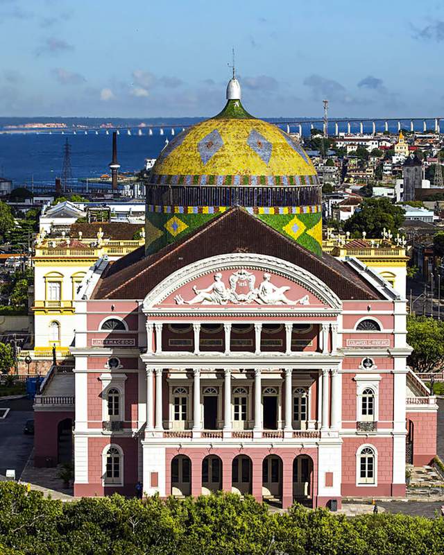 那種繁榮是荒誕的、劇烈的。橡膠大王把歐洲歌劇團請到雨林深處,建起了市中心的橡膠劇院(Teatro Amazonas)——意大利大理石、法國玻璃、葡萄牙瓷磚,全部逆流運進來,像是一座被硬塞進雨林的文明紀(jì)念碑。