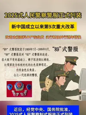 新中國成立以來,人民警察制式服裝共經(jīng)歷9次較大的改革,分別是50式警服、55式警服、58式警服、66式警服、72式警服、83式警服、89式警服、99式警服、2025式警服。(完)