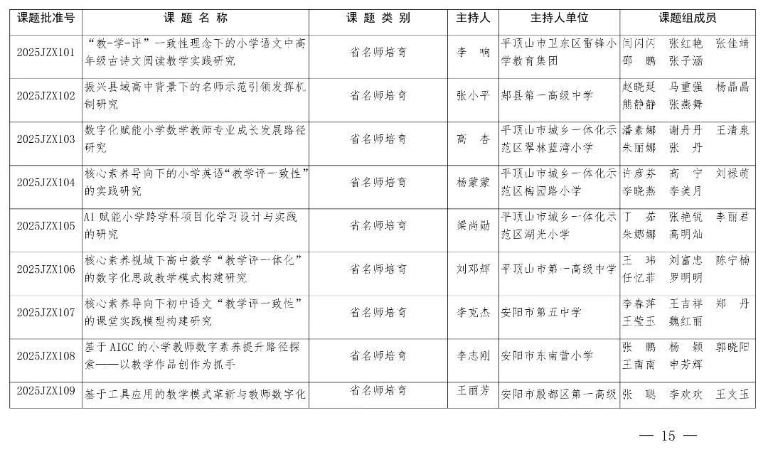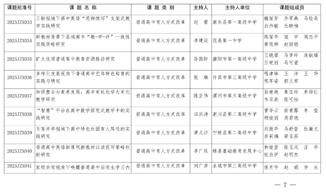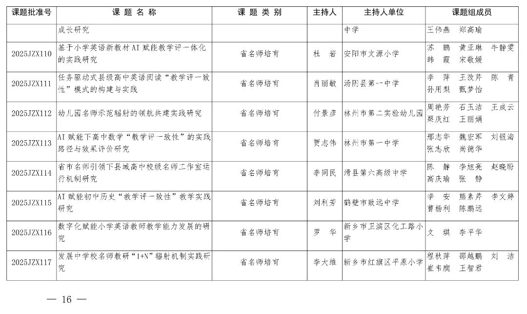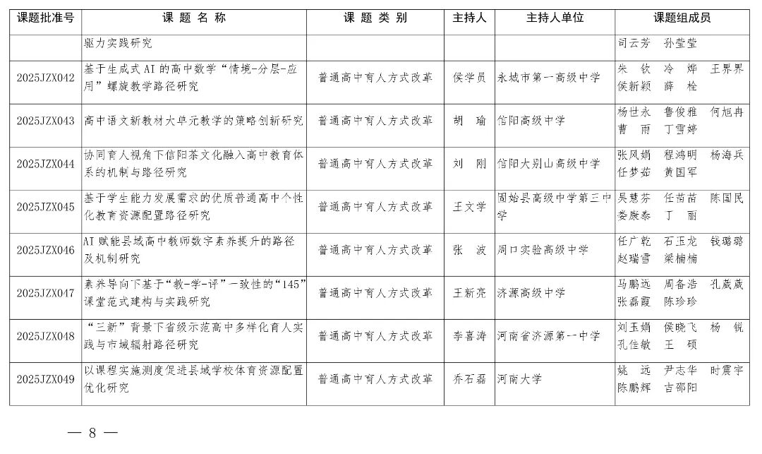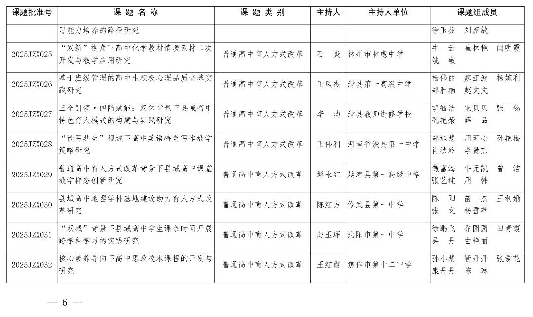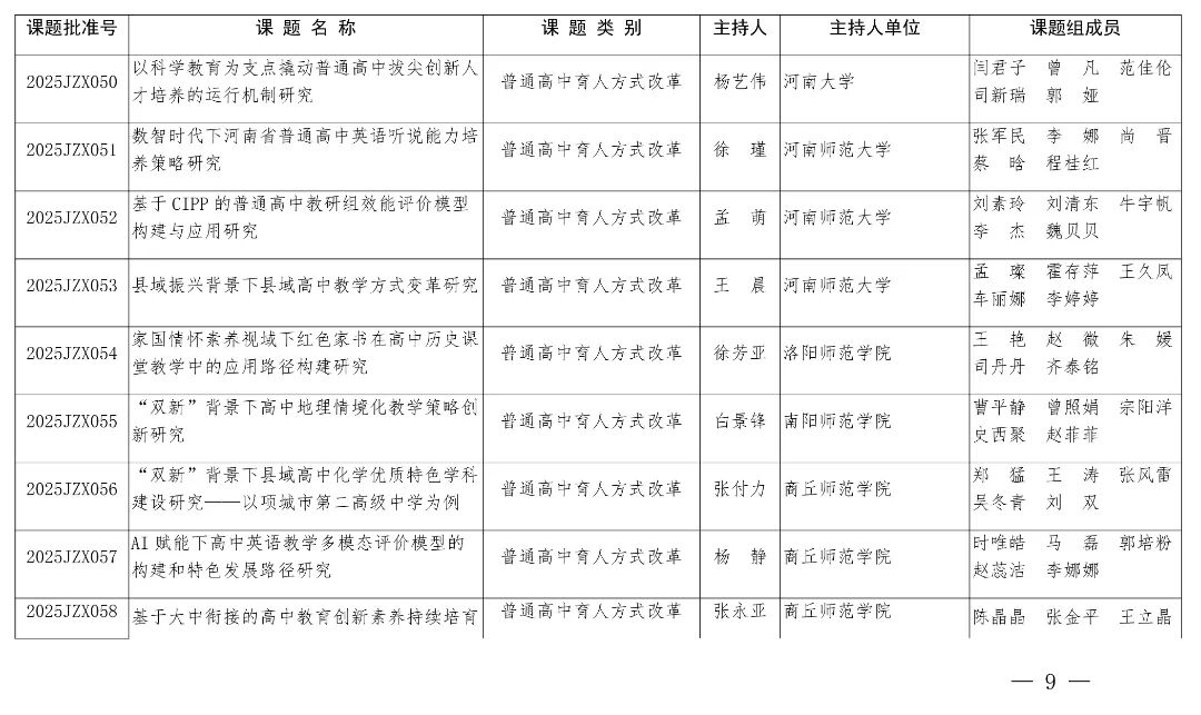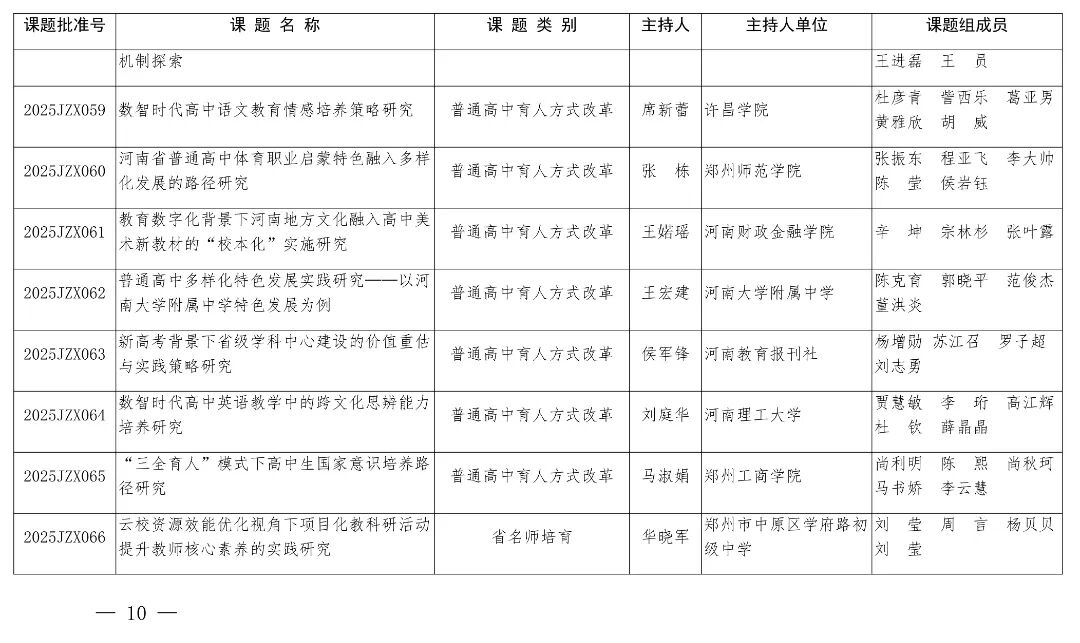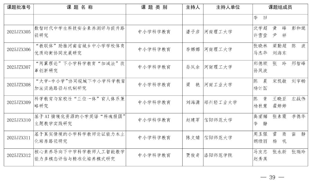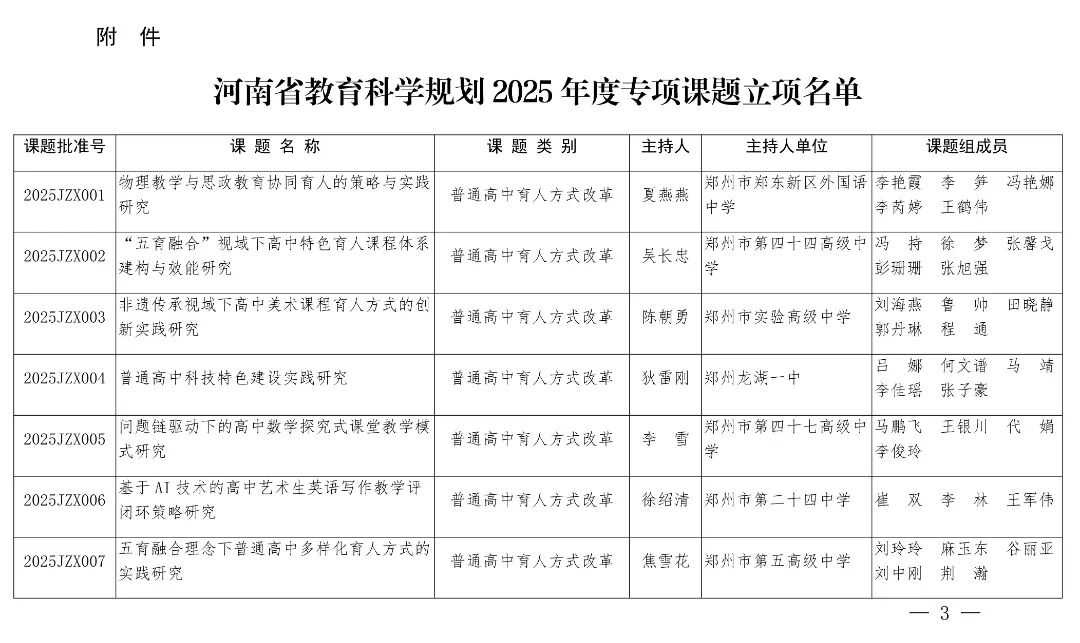 附件:河南省教育科學規劃2025年度專項課題立項名單