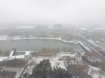 若去開封的龍亭湖,便更知這雪的妙處。往日里粼粼的湖水凝了薄冰,雪落在冰面上,又被偶爾掠過的水鳥啄出幾個小坑,坑底映著天空的藍(lán),倒像是誰把碎玉撒在了湖面。遠(yuǎn)處的角樓覆著雪,飛檐翹角藏在霧里,只露出黛色的輪廓,檐角的銅鈴裹著雪,風(fēng)一吹,鈴聲也變得慢悠悠的,像是從千年之前傳來。讓人恍惚間以為穿越了時光,仿佛下一秒就會有身著襦裙的女子,撐著油紙傘從雪巷深處走來,傘沿垂落的雪珠,會在青石板上砸出細(xì)碎的聲響。
