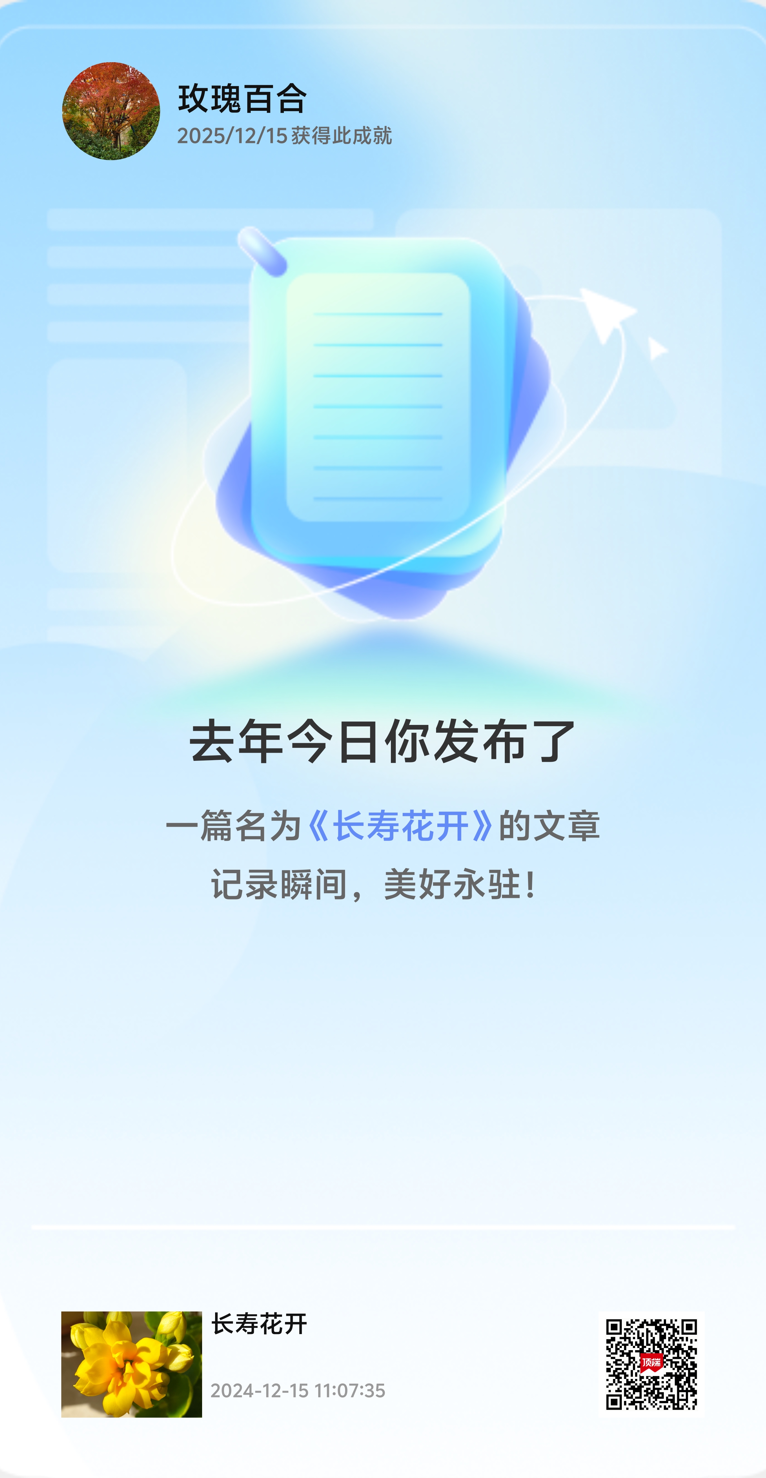 去年今日發表的文章,今日又見標題,滿滿的回憶。記錄瞬間,愿美好永駐!
