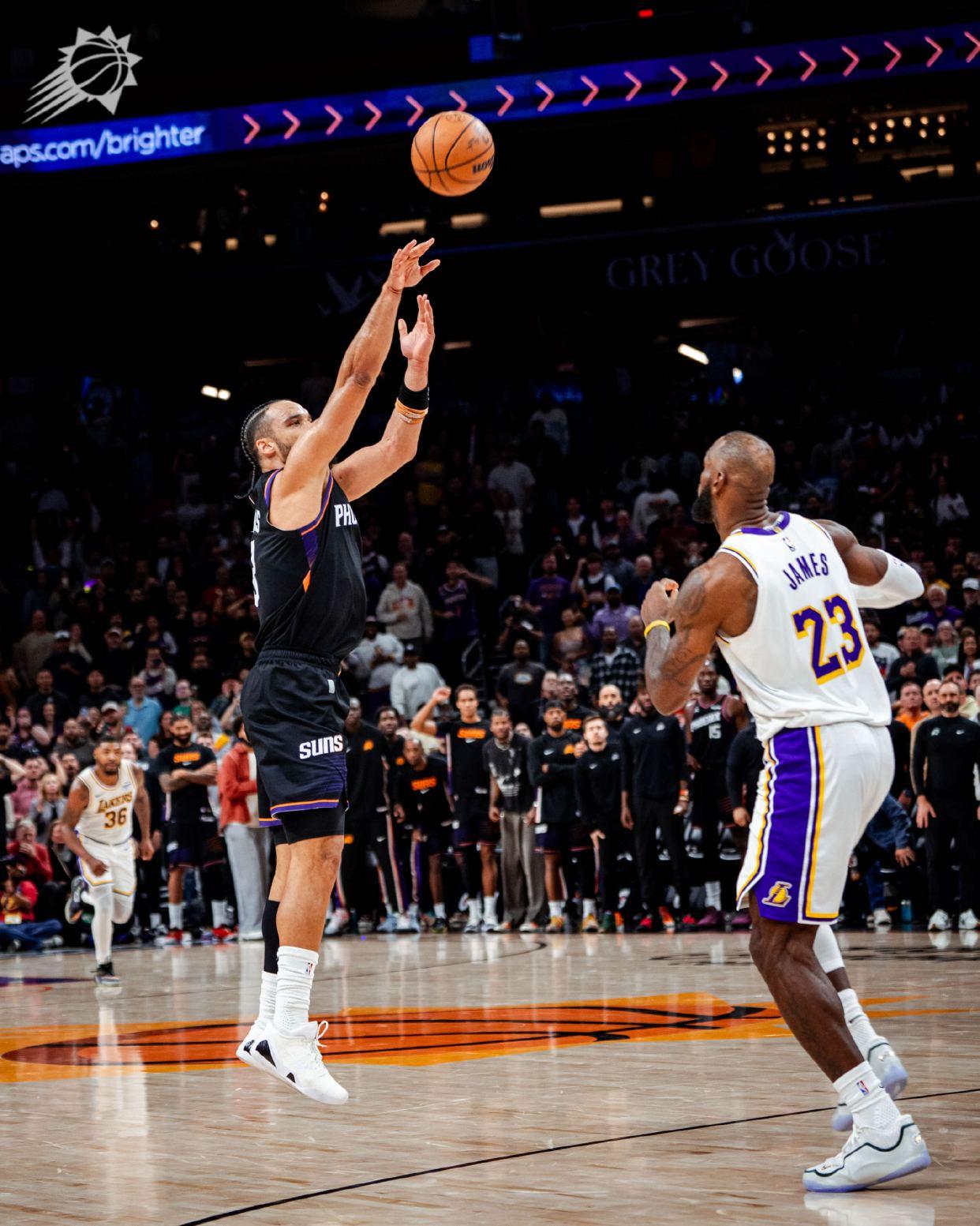 北京時間12月15日,NBA常規賽繼續火熱進行。湖人奔赴客場與太陽展開對決,該場比賽,是雙方本賽季的第二次交手。首戰17分完敗的紫金軍團,期待完成復仇。該場比賽,里夫斯、克萊伯、布朗尼傷停,雷迪克調整了陣容,勒布朗詹姆斯、盧卡東契奇攜手斯馬特、艾頓與八村塁出任首發。杰倫格林、利弗斯傷停,德文布克傷愈復出,并且攜手狄龍布魯克斯、格雷森阿倫、馬克威廉姆斯、吉萊斯皮出任首發,羅伊斯奧尼爾成為替補。東契奇與布克的頂級后衛對決,詹姆斯與狄龍的強力鋒線較量,艾頓面對舊主,都讓本場比賽看點十足。兩大西部勁旅,在此役上演了激烈廝殺。