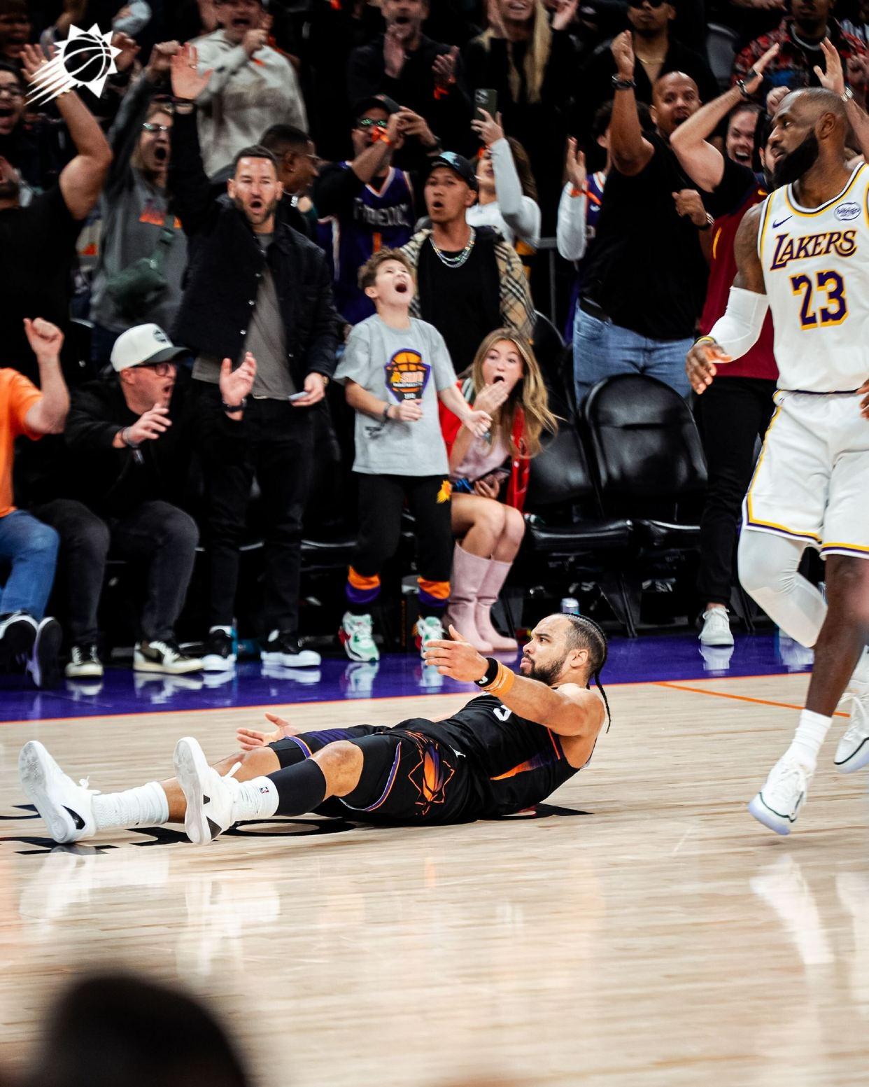 詹姆斯沖擊籃下得手,菲尼克斯請求暫停。阿倫2罰全中,斯馬特上籃被鄧恩封蓋,布克遠投不進,但他搶下前場籃板,狄龍轟進三分球。比賽還剩12秒,湖人落后1分雷迪克請求暫停。狄龍進球后沖撞詹姆斯吃到技術犯規,隨后被驅逐出場。詹姆斯罰球不中,詹姆斯出手三分球被布克犯規,菲尼克斯挑戰判罰失敗,詹姆斯3罰2中,隨后封蓋阿倫的遠投出手。斯馬特搶下籃板被犯規,隨后2罰1中,比賽時間走完。最終,湖人以116比114險勝對手,拒絕了20分逆轉。紫金軍團此戰搶下了24個前場籃板。據統計,這是湖人兩年來首次單場進攻籃板達到20+,上一次還是2023年12月,當時的對手也是太陽。
