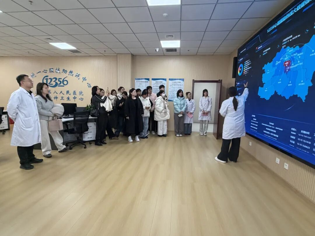 交流結束后,校方師生實地參觀了醫院心理治療室,近距離觀摩音樂治療場景,同時參觀我院12356全國心理援助熱線中心、兒童青少年心理科和中醫科等特色科室。