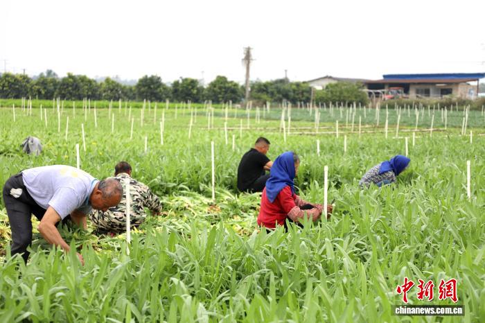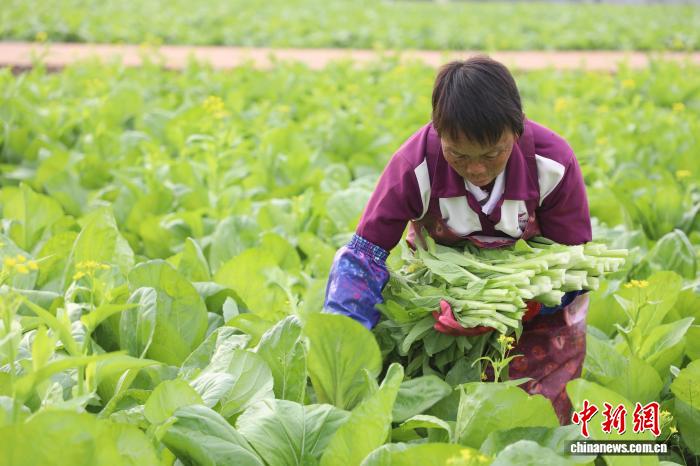 圖為村民在采摘苦麥菜。朱汝芳 攝