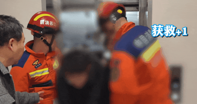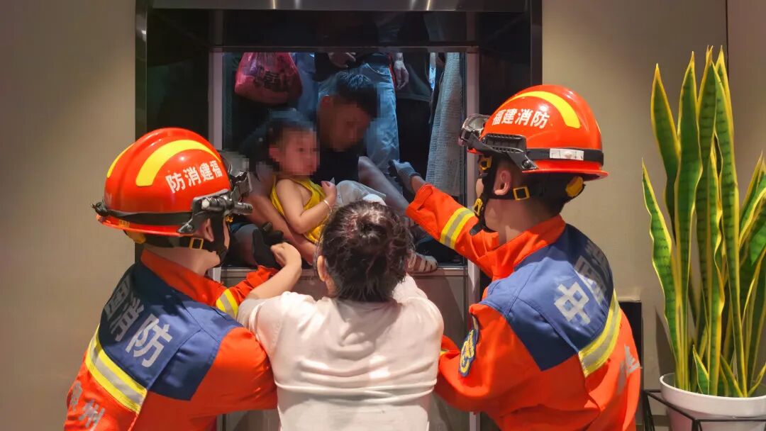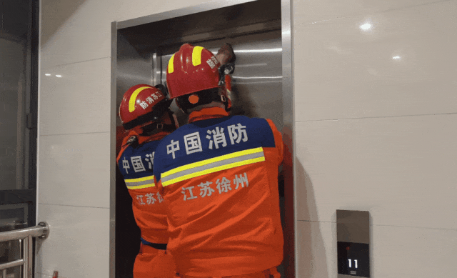 消防員與電梯維保人員展開救援。圖源:徐州消防