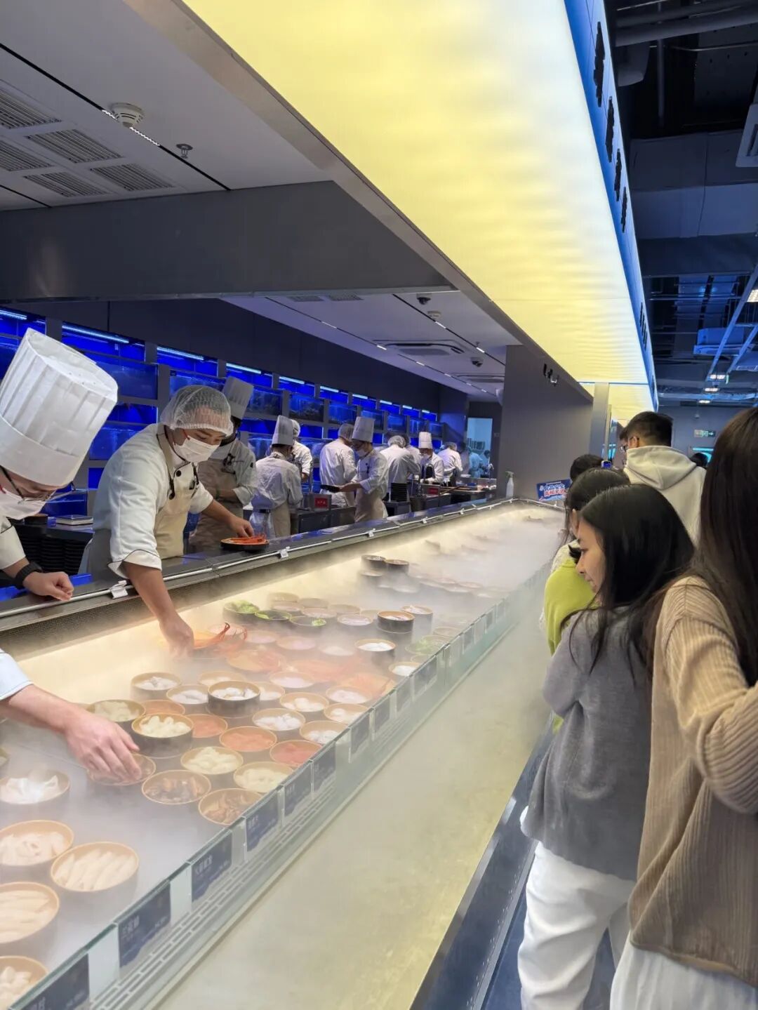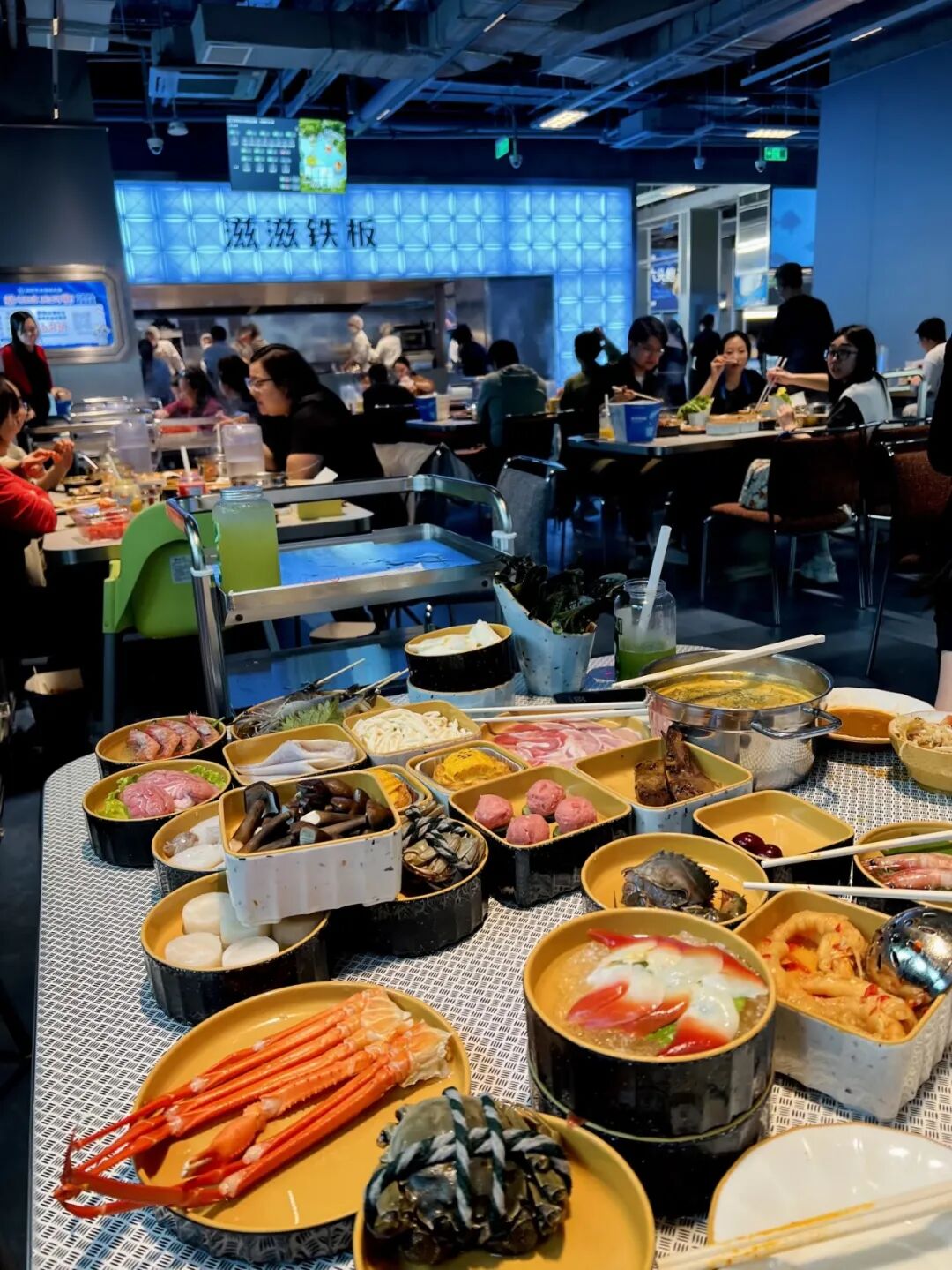 在產(chǎn)品設(shè)置方面,200多款產(chǎn)品“多而不雜”,鮮切肉類、鮮活海鮮和鐵板系列結(jié)合充滿煙火氣和市井感的現(xiàn)場加工,同時,門店的產(chǎn)品會隨著時令動態(tài)調(diào)整,讓顧客“常吃常新”。