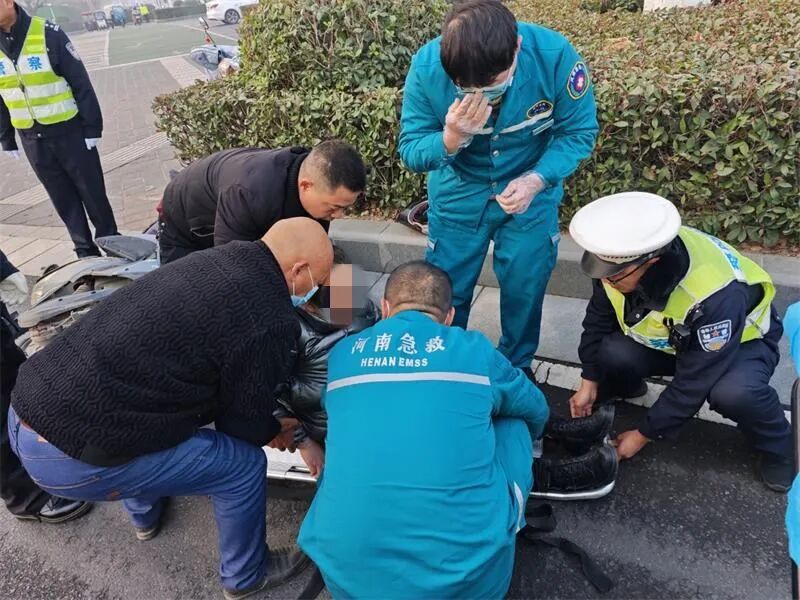 接到指令后值班民輔警立即趕往現場,發現一輛二輪電動車與一輛轎車相撞,二輪電動車駕駛人受傷。民警閆生帶領輔警谷天崖、陳志勝、吳東升引導過往車輛有序繞行,避免二次事故的發生;現場固定證據,安撫傷者情緒,等待救護車的到來。