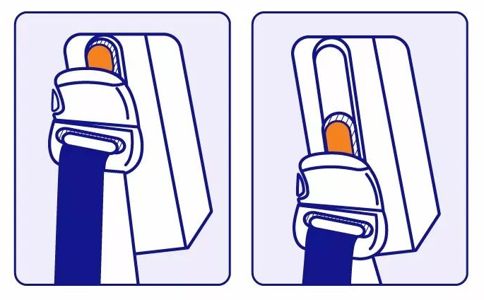 2.坐在車座上,一手拉出安全帶,另一只手握住卡扣處,將卡扣片與卡扣處卡緊,以確保安全帶牢牢地拴住身體。