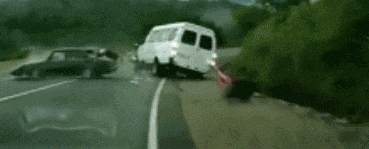 ▲?車輛轉(zhuǎn)彎處,兩車相撞,黑色小轎車乘客未系安全帶被甩出車外。