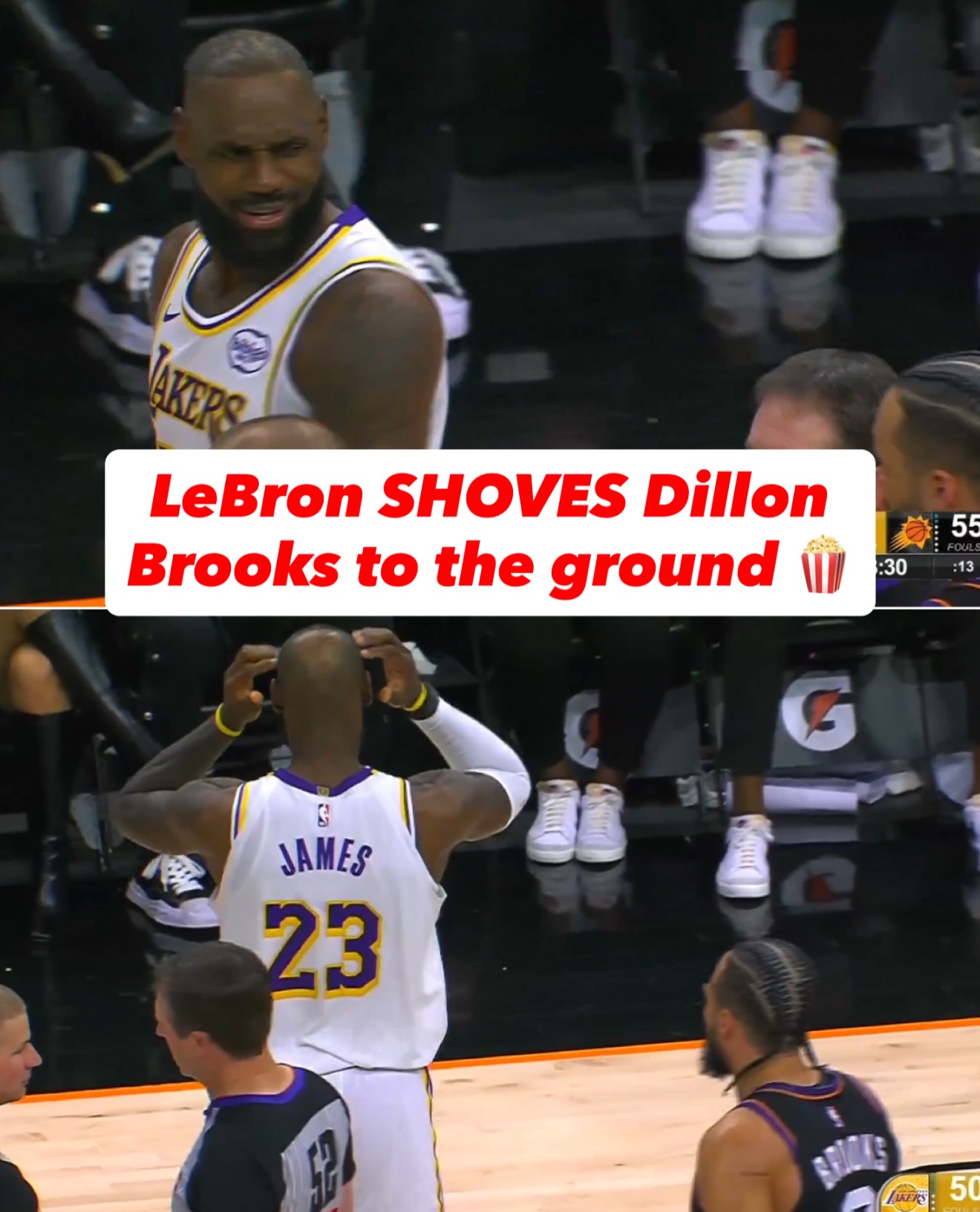 第三節的時候,狄龍布魯克斯上籃被勒布朗詹姆斯大帽,狄龍布魯克斯也是將球拍向勒布朗詹姆斯。本來這個操作沒有太大的問題,可是考慮到狄龍布魯克斯一直在針對勒布朗詹姆斯,導致勒布朗詹姆斯非常敏感。