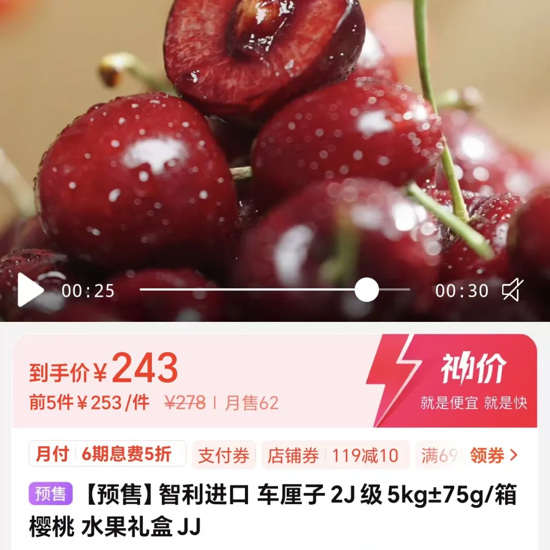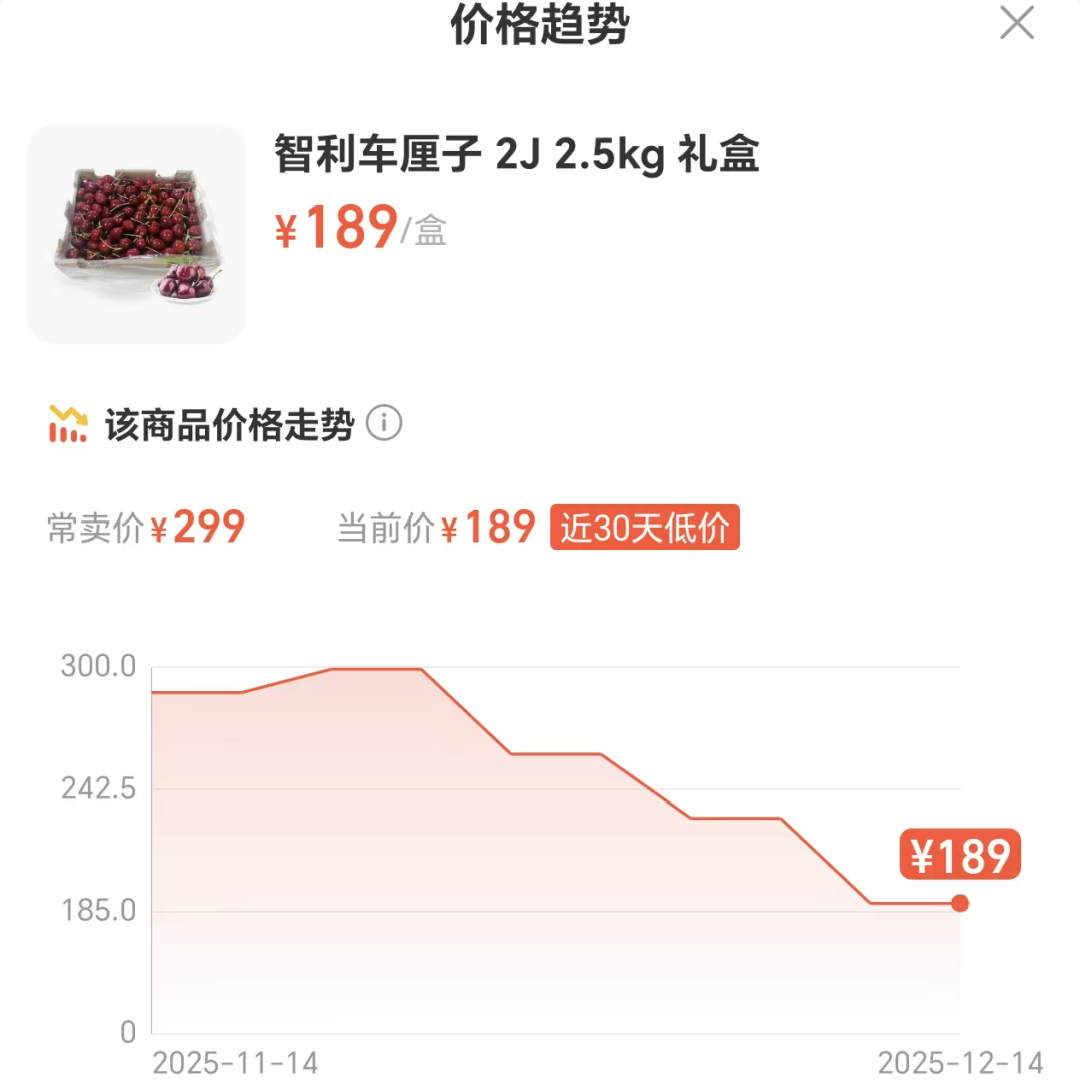 在浙江文暉果品市場,經(jīng)營了七八年的商戶于先生說:“大概一周前,海運(yùn)車?yán)遄拥诌_(dá),杭州市場上車?yán)遄拥膬r格也有所下調(diào),以這里的3J車?yán)遄訛槔现芸者\(yùn)的價格是300元出頭一箱(2.5kg),現(xiàn)在的價格在270至280元,相當(dāng)于每箱便宜了30至40元。”他還回憶說,今年智利車?yán)遄?1月中旬上市,空運(yùn)早期2J的要500元左右一箱(2.5kg),現(xiàn)在一箱海運(yùn)的價格為220元,差不多便宜了一半。至于接下來車?yán)遄拥膬r格還會不會繼續(xù)下降,有的商戶表示,再過段時間價格肯定還會降,但臨近元旦預(yù)計降幅有限,此外,大家選購水果包括車?yán)遄樱膊荒芄饪磧r格,還要對比口感、大小和品質(zhì)。
