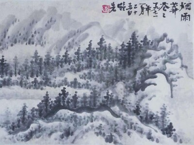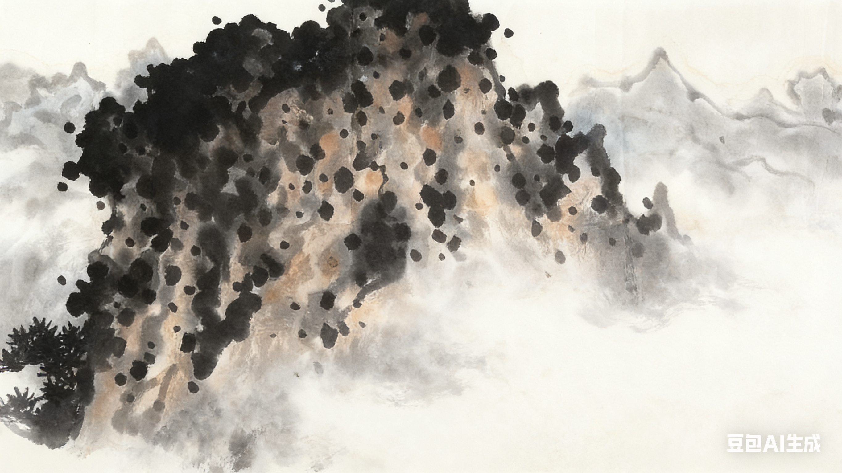石濤《苦瓜和尚畫(huà)語(yǔ)錄》中的「一畫(huà)論」,主張「一畫(huà)者,眾有之本,萬(wàn)象之根」,強(qiáng)調(diào)筆墨需以心為統(tǒng)帥,實(shí)現(xiàn)整體性的精神表達(dá)。顧強(qiáng)先對(duì)此有著深度的理論詮釋,其在《顧強(qiáng)先論文集:石濤研究》(臺(tái)灣醒吾商専1982年版)中寫(xiě)道:「一筆者,非指單筆,乃指筆墨之氣脈相連,一山一水、一松一雲(yún),皆出於一心,成於一氣。」這一解讀,將石濤的「一畫(huà)論」從筆墨形式層面,升華至精神氣脈層面,更為畫(huà)面的「生恣」之美提供了內(nèi)核支撐。畫(huà)中從近景松峰的焦墨點(diǎn)染,到中景雲(yún)壑的淡墨暈染,再到遠(yuǎn)景峰巒的淺絳敷色,筆墨的轉(zhuǎn)換毫無(wú)割裂之感:焦墨的「實(shí)」與淡墨的「虛」相互映襯,淺絳的「柔」與枯筆的「剛」彼此平衡。正如其畫(huà)語(yǔ)所云「墨分五彩,不在色之多,而在氣之通」,整幅手卷的筆墨形成一個(gè)氣脈貫通的整體,一筆墨色可兼?zhèn)渖绞馁|(zhì)感與雲(yún)氣的虛靈,筆勢(shì)的收放之間,盡顯山水的恣肆生動(dòng),實(shí)現(xiàn)了「一筆萬(wàn)象」的藝術(shù)效果,是對(duì)石濤「一畫(huà)論」的繼承與個(gè)人化解讀。