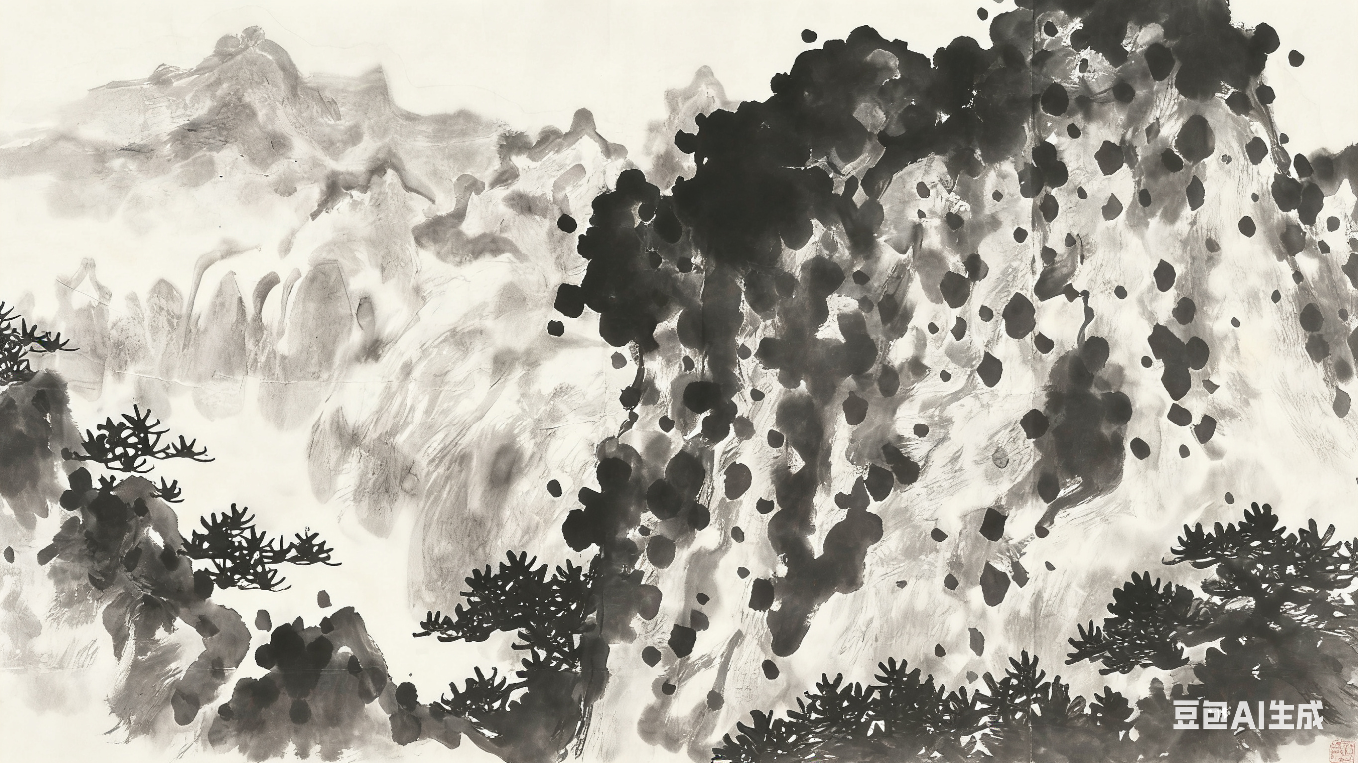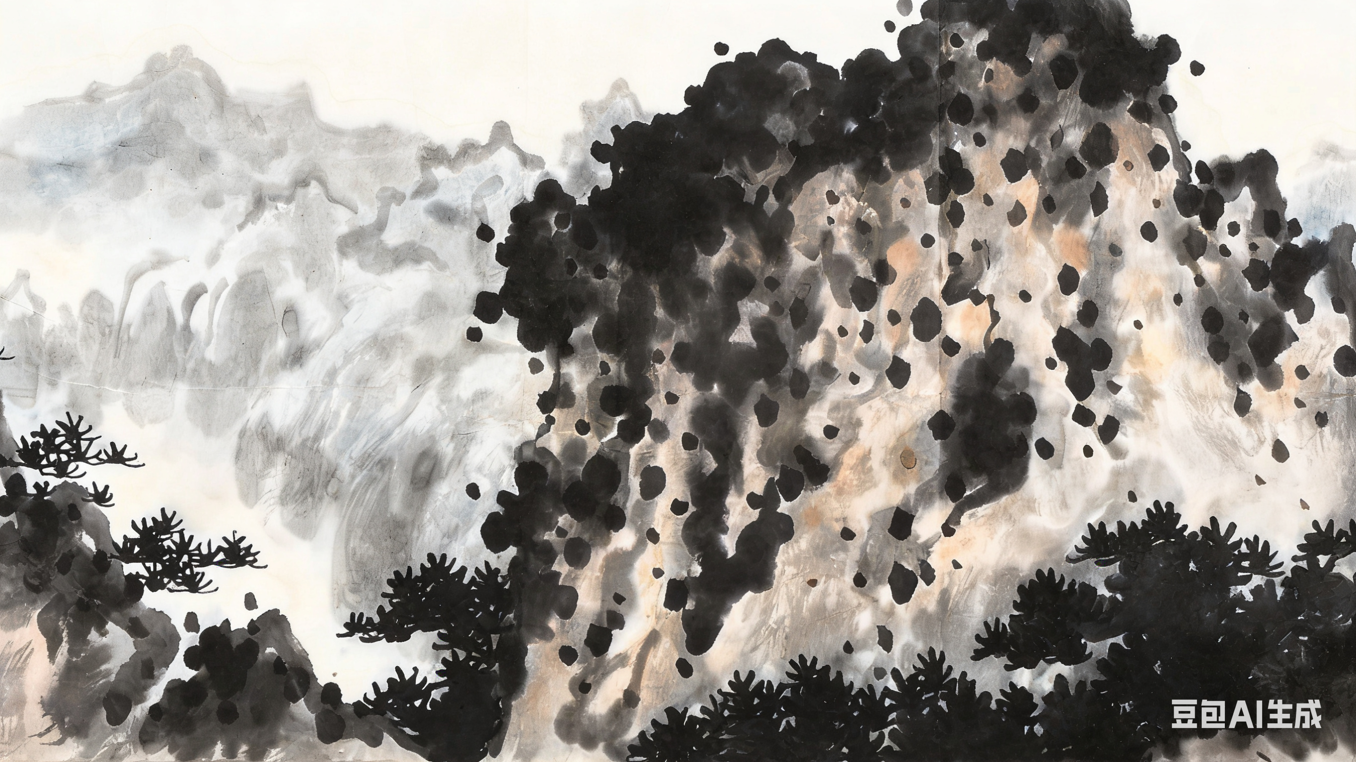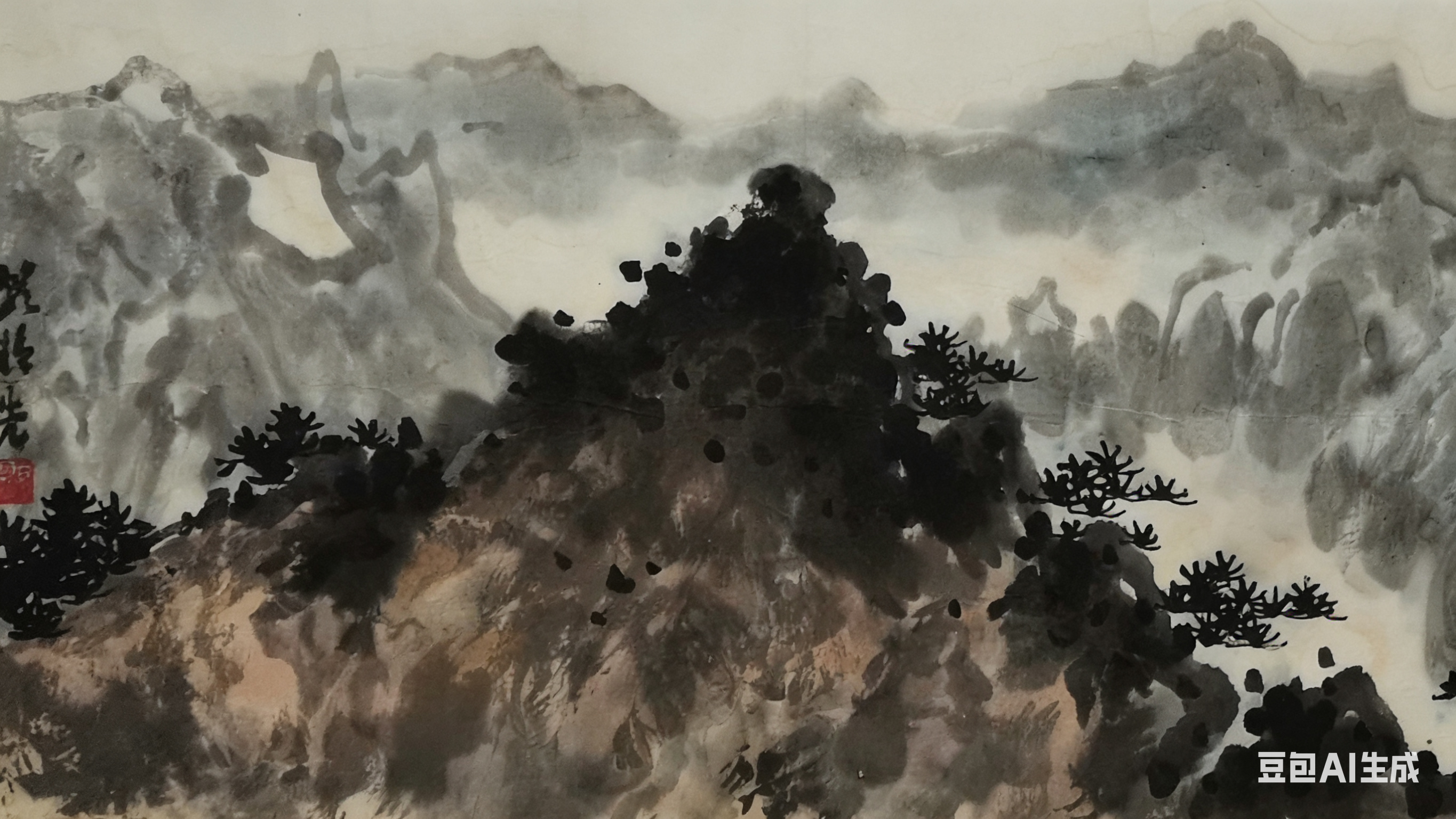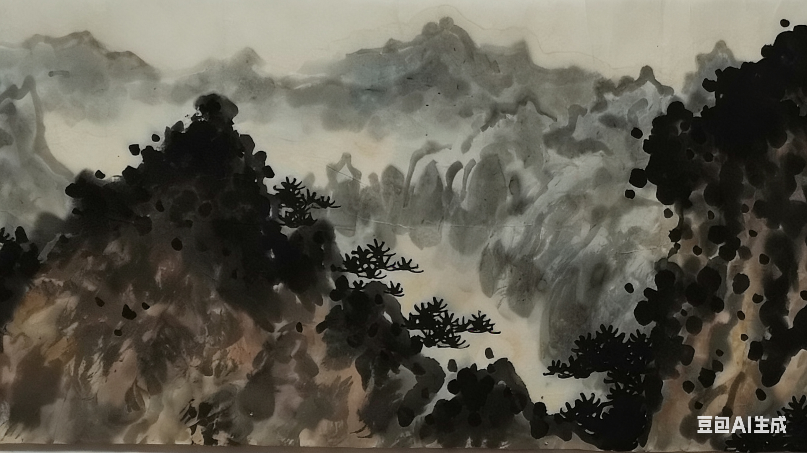 顧強(qiáng)先在其畫(huà)論《山水筆墨談》中直言:「山水之妙,在於以自然為骨,以文心為魂,筆墨無(wú)定法,唯隨心而走。」這一主張與石濤「無(wú)法之法,乃為至法」的理念形成跨越時(shí)空的呼應(yīng),更為《雲(yún)壑松峰》「雲(yún)壑生恣」的畫(huà)面意境奠定了理論根基。在這幅手卷中,這一畫(huà)論被轉(zhuǎn)化為張弛有度的創(chuàng)作實(shí)踐:畫(huà)家並非照搬傳統(tǒng)山水的程式化雲(yún)紋與峰巒范式,而是以親身遊歷山林的觀察為基,捕捉雲(yún)氣繚繞松峰的野逸之態(tài)。其畫(huà)語(yǔ)錄中記載:「觀雲(yún)於晨,見(jiàn)其聚散無(wú)常,墨法當(dāng)效此,淡墨暈其形,留白顯其動(dòng),方得雲(yún)之靈。」於是畫(huà)中雲(yún)壑以淡墨層層暈染,兼用大面積留白表現(xiàn)雲(yún)氣翻涌的恣肆之姿,墨色從濃到淡的過(guò)渡如自然雲(yún)氣般無(wú)跡可尋;而松峰的塑造,則依其「松不僅寫(xiě)形,更要寫(xiě)骨,焦墨點(diǎn)針,枯筆塑幹,方見(jiàn)松之堅(jiān)」的畫(huà)語(yǔ),以焦墨點(diǎn)苔法寫(xiě)松針,枯筆逆鋒塑松幹,將自然中山松的蒼勁之態(tài)與文人心中松的堅(jiān)貞之魂融於一體。筆勢(shì)間的縱橫開(kāi)合,恰是其「筆隨心運(yùn)」主張的具象體現(xiàn),亦是對(duì)石濤「外師造化,中得心源」理念的當(dāng)代延續(xù)。