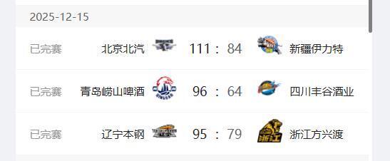 CBA常規(guī)賽第二輪,12月15日晚上只有三場比賽,其中遼寧隊在主場以95-79戰(zhàn)勝廣廈隊,胡金秋空砍24分,廣廈隊4人得分上雙,外援集體迷失;青島隊主場以96-64大勝四川隊,青島隊6人得分上雙,四川隊段睿琪20分;北京首鋼隊在主場以111-84大勝新疆隊,趙睿首發(fā)只打了8分鐘拿到8分,陳盈駿29分。
