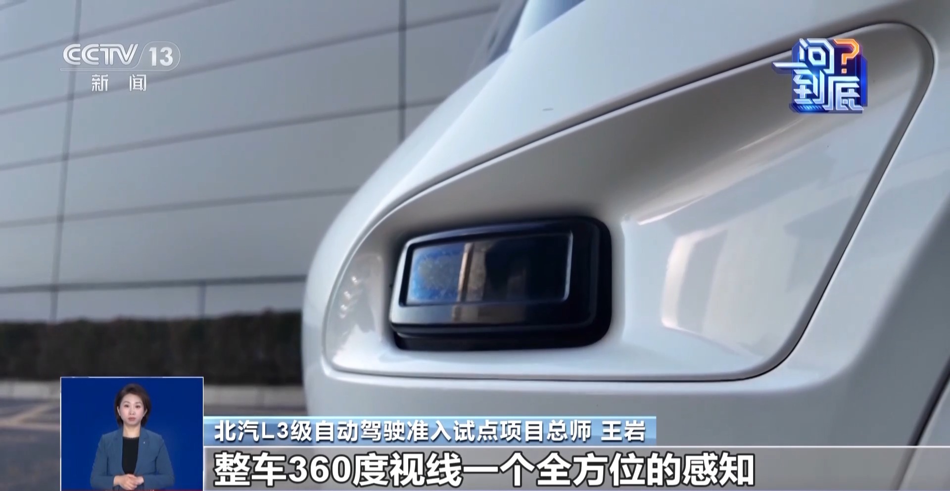 北汽L3級自動駕駛準入試點項目總師 王巖:這些傳感器都是前裝量產的狀態,三顆激光雷達,十幾顆攝像頭,車身周圍還有很多超聲波雷達。整車360度視線,一個全方位的感知,來實時探測車身周圍的風險。