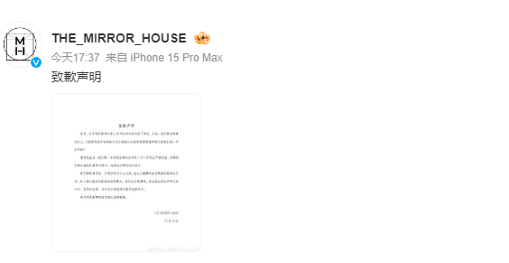 搜狐娛樂訊 12月15日,THE MIRROR HOUSE 發致歉聲明:近日,由于團隊賬號運營人員不恰當言論引發了爭議。在此,我們要向張婧儀女士,《致我那菜市場的白月光》劇組以及各位喜愛劇集的觀眾朋友們說一聲對不起!并表示涉事人員已作出嚴肅處理。