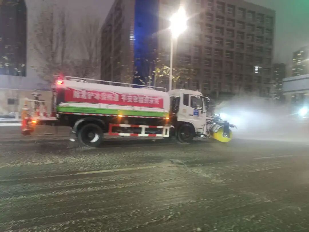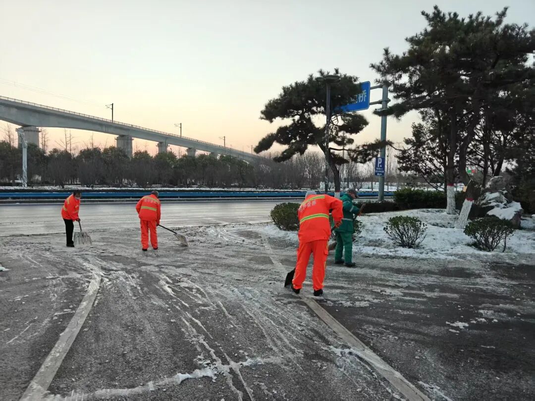 600余名工作人員頂風冒雪、不畏嚴寒,手持掃雪鏟、推雪板,重點對人行步道、學校、醫院周邊、公交站點等不適合機械化作業區域,逐段作業。僅用6小時便實現主次干道積雪基本清除,重點區域無積雪、無結冰,用高效作業守護群眾出行安全。