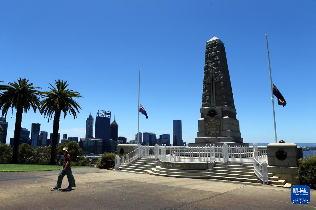 12月15日,澳大利亞珀斯的國王公園降半旗悼念悉尼邦迪灘槍擊事件遇難者。