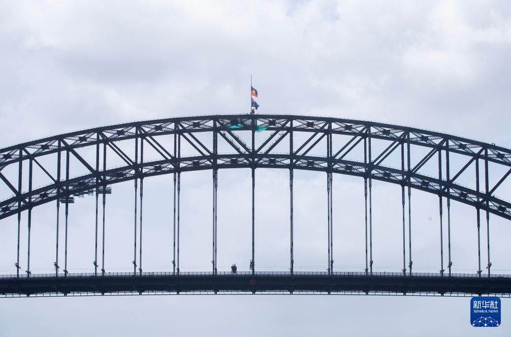 12月15日,澳大利亞悉尼的海港大橋降半旗悼念邦迪灘槍擊事件遇難者。