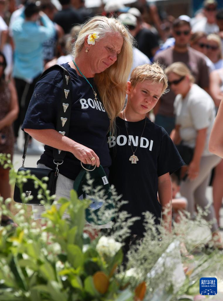 12月15日,在澳大利亞悉尼,人們在邦迪灘槍擊事件現(xiàn)場附近悼念遇難者。