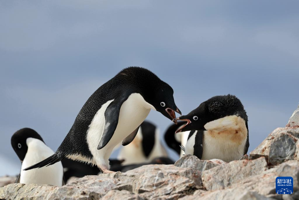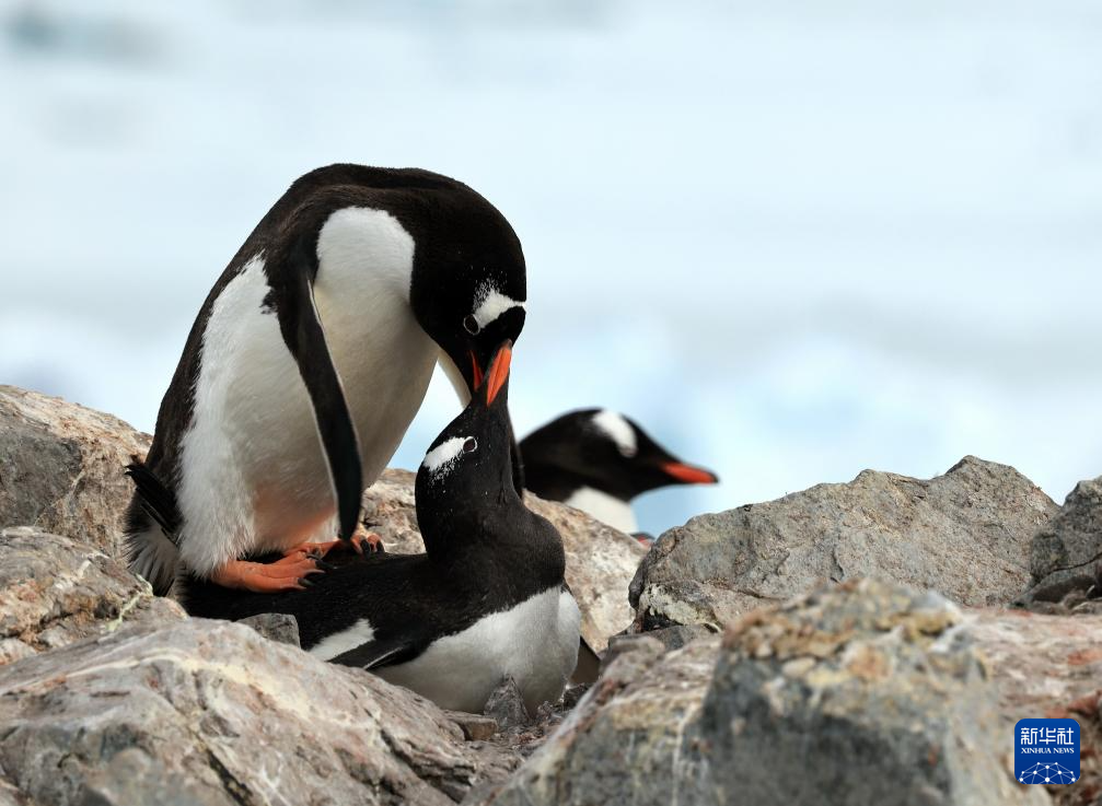這是12月12日在南極洲拍攝的一對正在孵化幼鳥的企鵝。