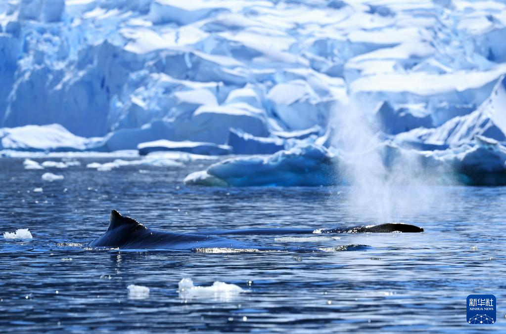 這是12月12日在南極洲拍攝的兩頭游弋的鯨。