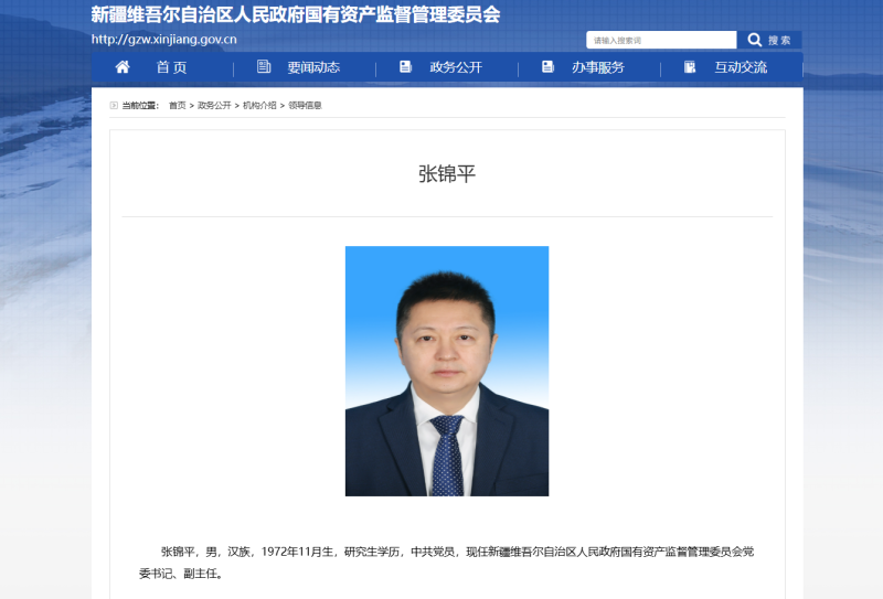 據新疆維吾爾自治區政府國資委官網消息,張錦平已任新疆維吾爾自治區政府國資委黨委書記、副主任。