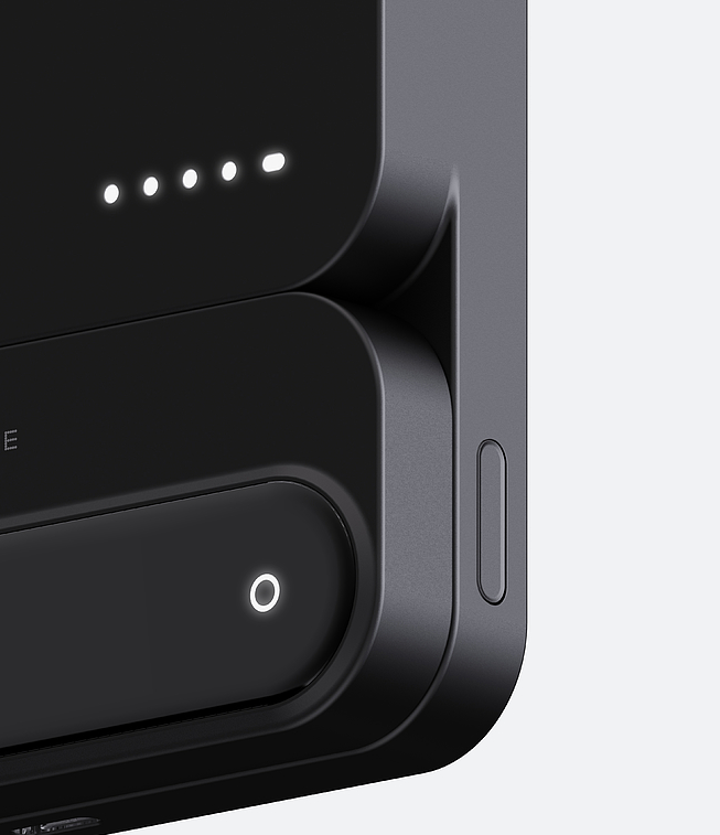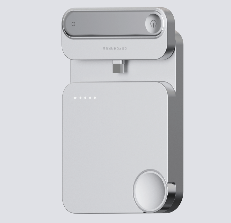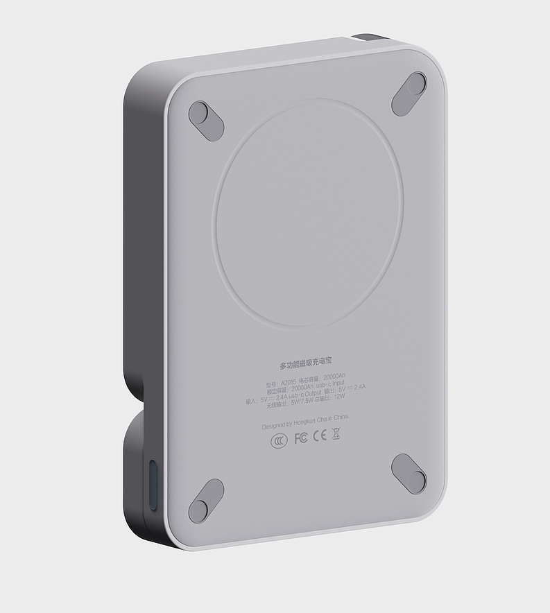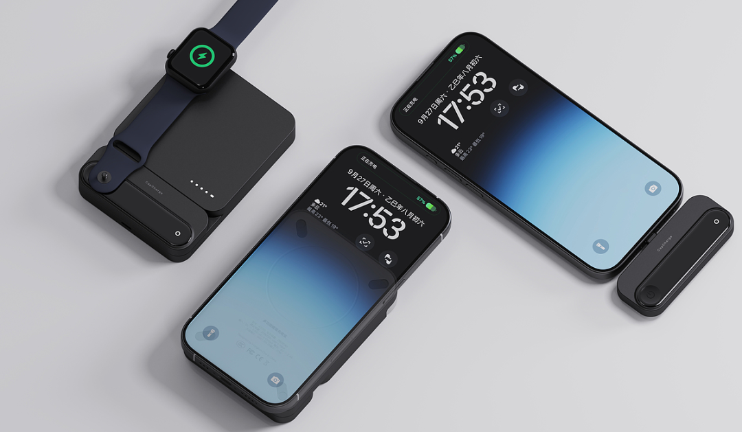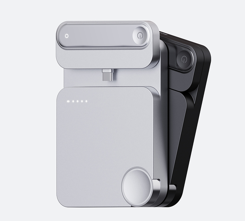 一體式設計則聚焦多設備協同需求,無需額外數據線,機身正面的磁吸區域可直接吸附手機實現無線快充,側面隱藏式無線充電板則適配手表、耳機等小型數碼設備。