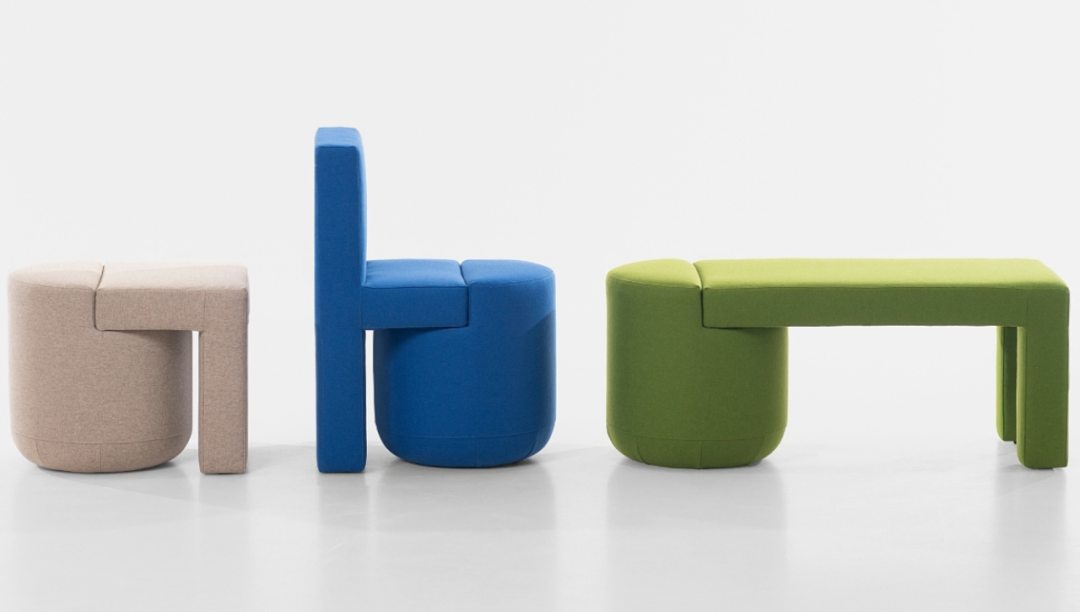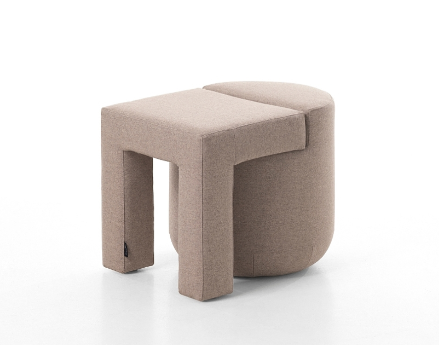 它摒棄了復雜冗余的設計語言,轉而以 “基礎幾何體量組合” 為核心概念,用最純粹的設計邏輯,重新詮釋沙發、扶手椅、腳凳等常見家具的形態。