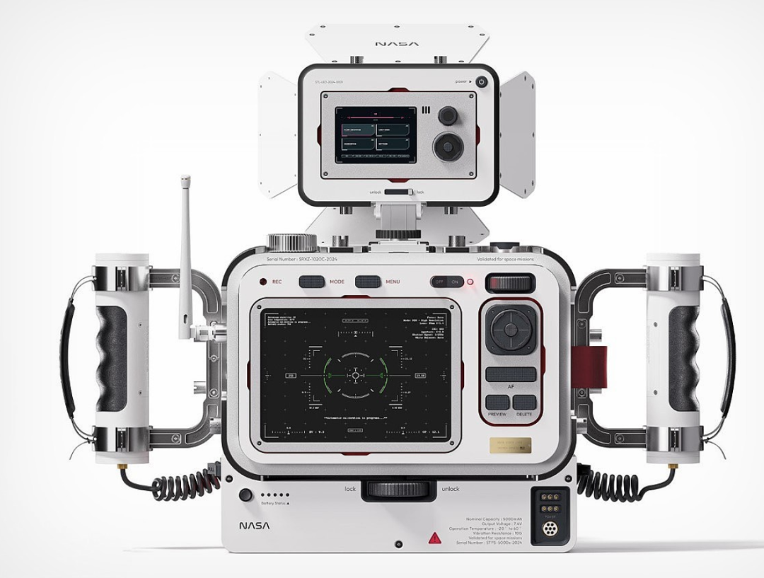 這款相機的模塊化優勢貫穿于每一個可快拆快換的組件中:輕量化保護框可根據任務場景切換——在艙外行走時裝配防隕石撞擊的強化款,艙內記錄時則更換便攜款減少負重;人體工學手柄支持單手操作。