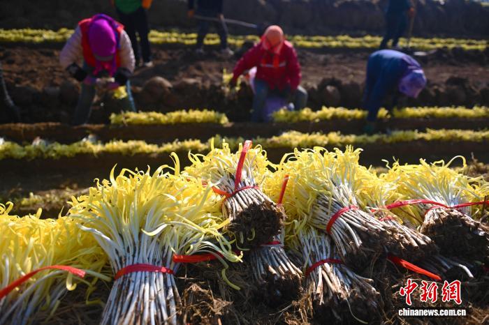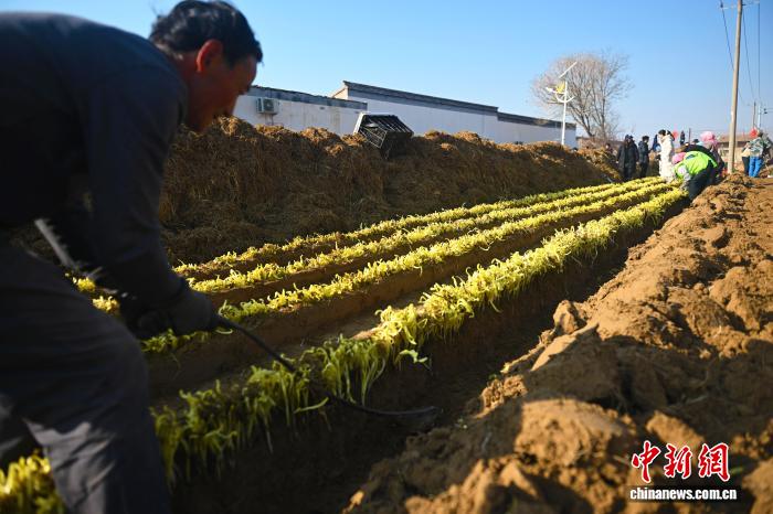 中新網蘭州12月15日電 (馮志軍 杜萍 高瑩)韭黃,一種對韭菜實施“軟化之術”的冬日珍饈,15日在蘭州黃河以北的山地之上掀開其“時令之鮮”。區別于市場上大多“挺拔如劍”的韭黃身姿,麥草在黃土地長時間覆蓋下,任其“雜亂無章”生長而成的“金凰后”韭黃,形成了獨具特色的天然“自來卷”。