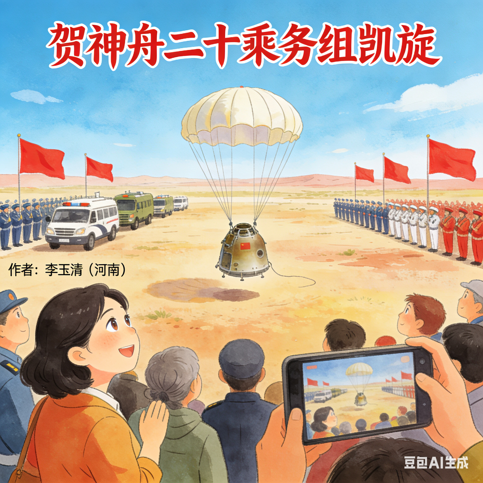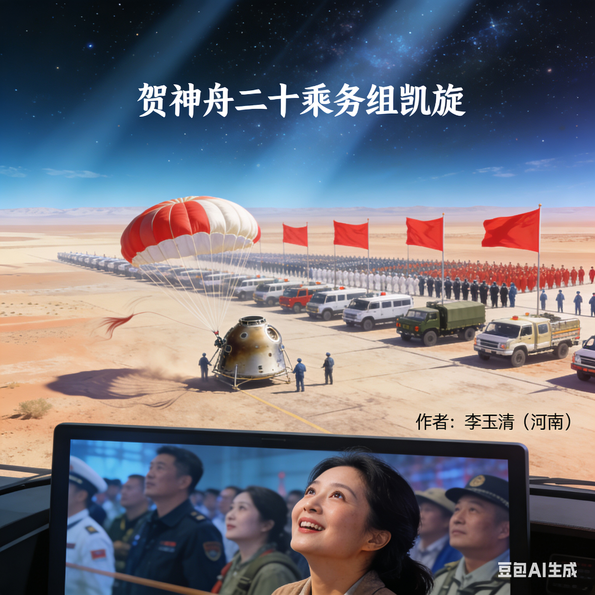 這首七律以神舟二十凱旋為核心,構(gòu)建了一幅壯闊恢弘、昂揚(yáng)熾熱的時(shí)代畫卷,意境兼具空間的磅礴感、情感的濃烈度與精神的厚重感,既再現(xiàn)了凱旋場(chǎng)景的熱烈莊重,更彰顯了中國(guó)航天的奮進(jìn)之志與華夏兒女的家國(guó)情懷。