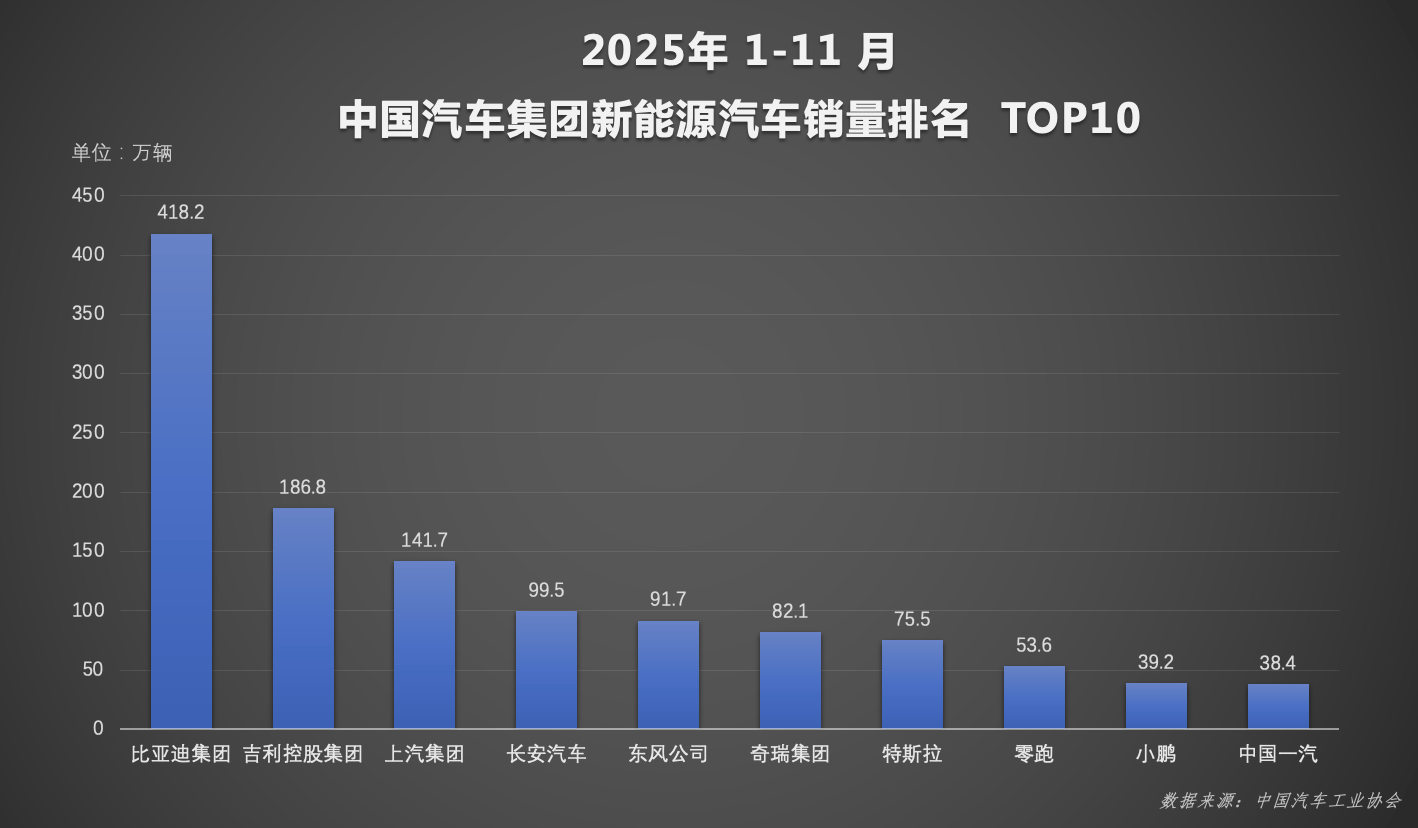 年末車市沖刺階段,國內新能源汽車龍頭企業比亞迪表現亮眼持續領跑。從企業獲悉,比亞迪11月單月銷量突破48萬輛,創2025年品牌銷量新高,年內前11個月累計銷量達418.2萬輛,同比增長11.3%,年度銷量目標完成率已超9成,隨著12月旺季到來,全年銷量有望超額收官。