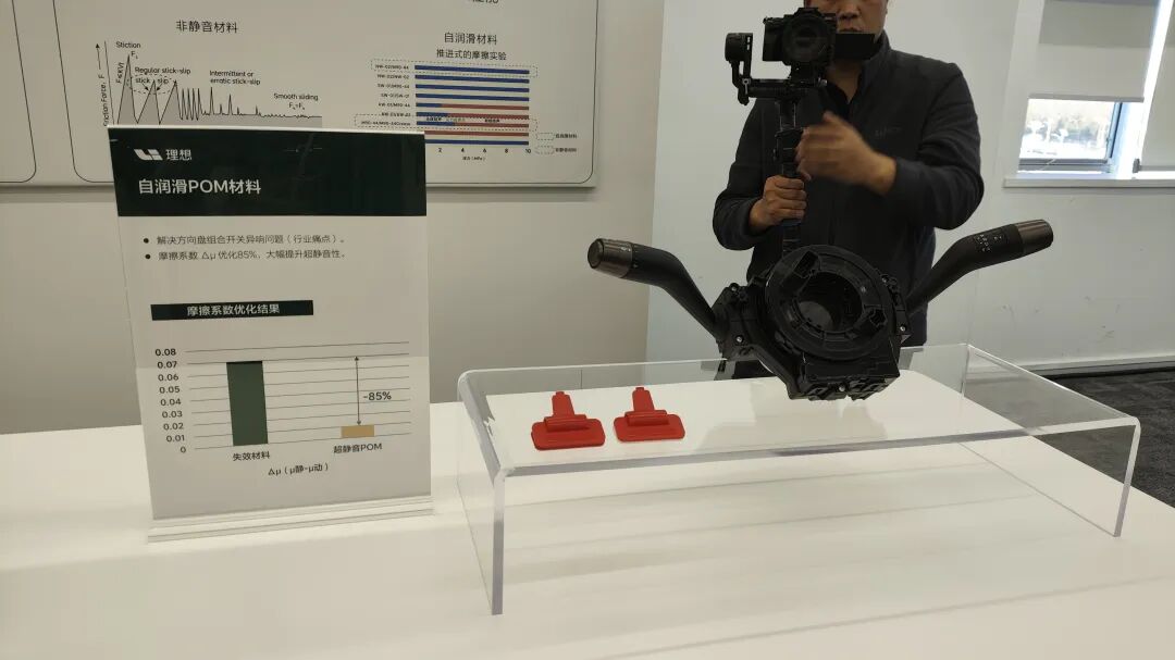 比如為了抑制方向盤開關的磨損異響,理想摒棄了原本需要依賴潤滑油的材料,轉而選擇了“自潤滑POM”材料;